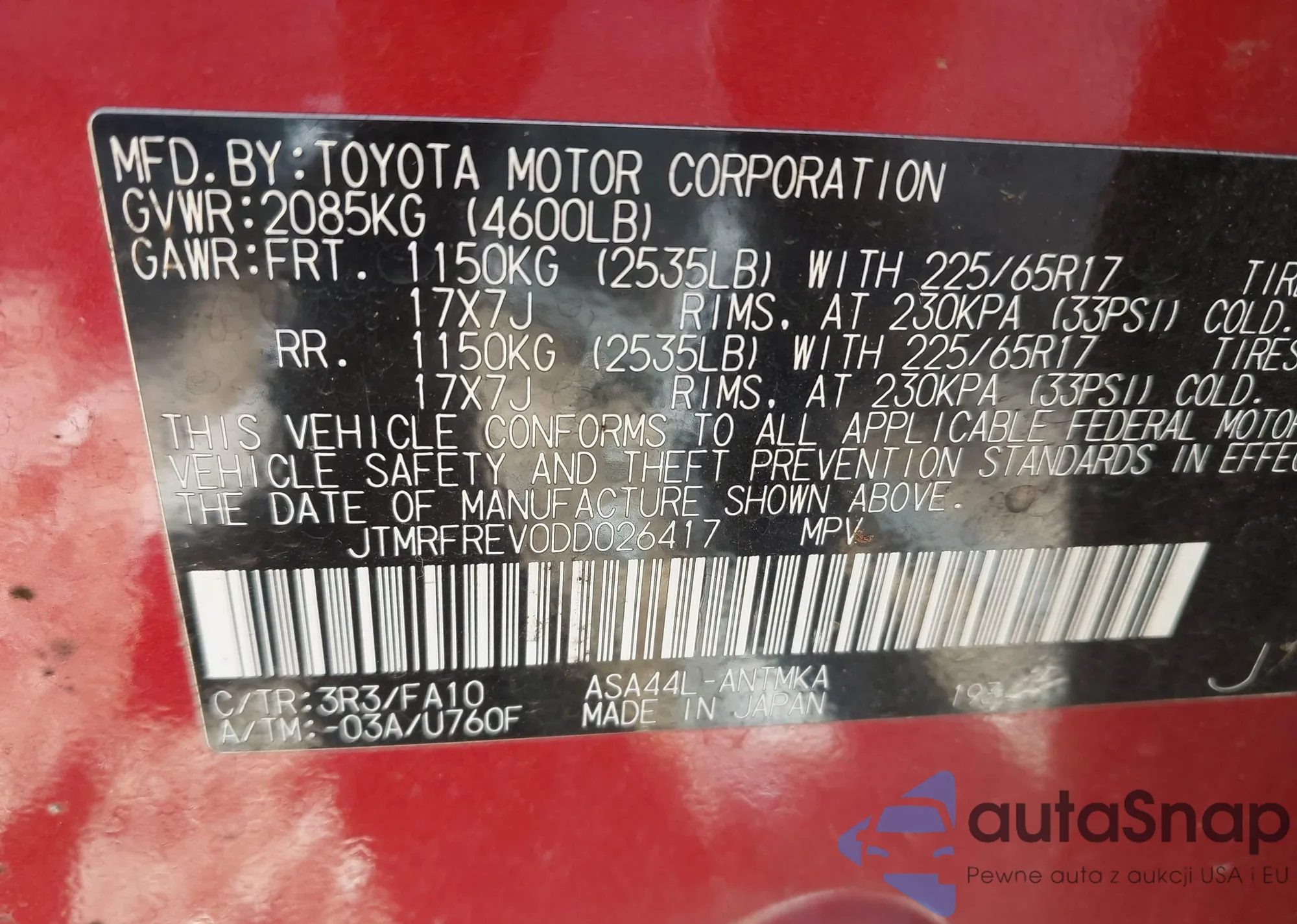 The car Toyota RAV 4 2013 (VIN JTMRFREV0DD026417) is sold by an unverified seller. We recommend checking the Carfax report and confirming registration possibilities before purchase.