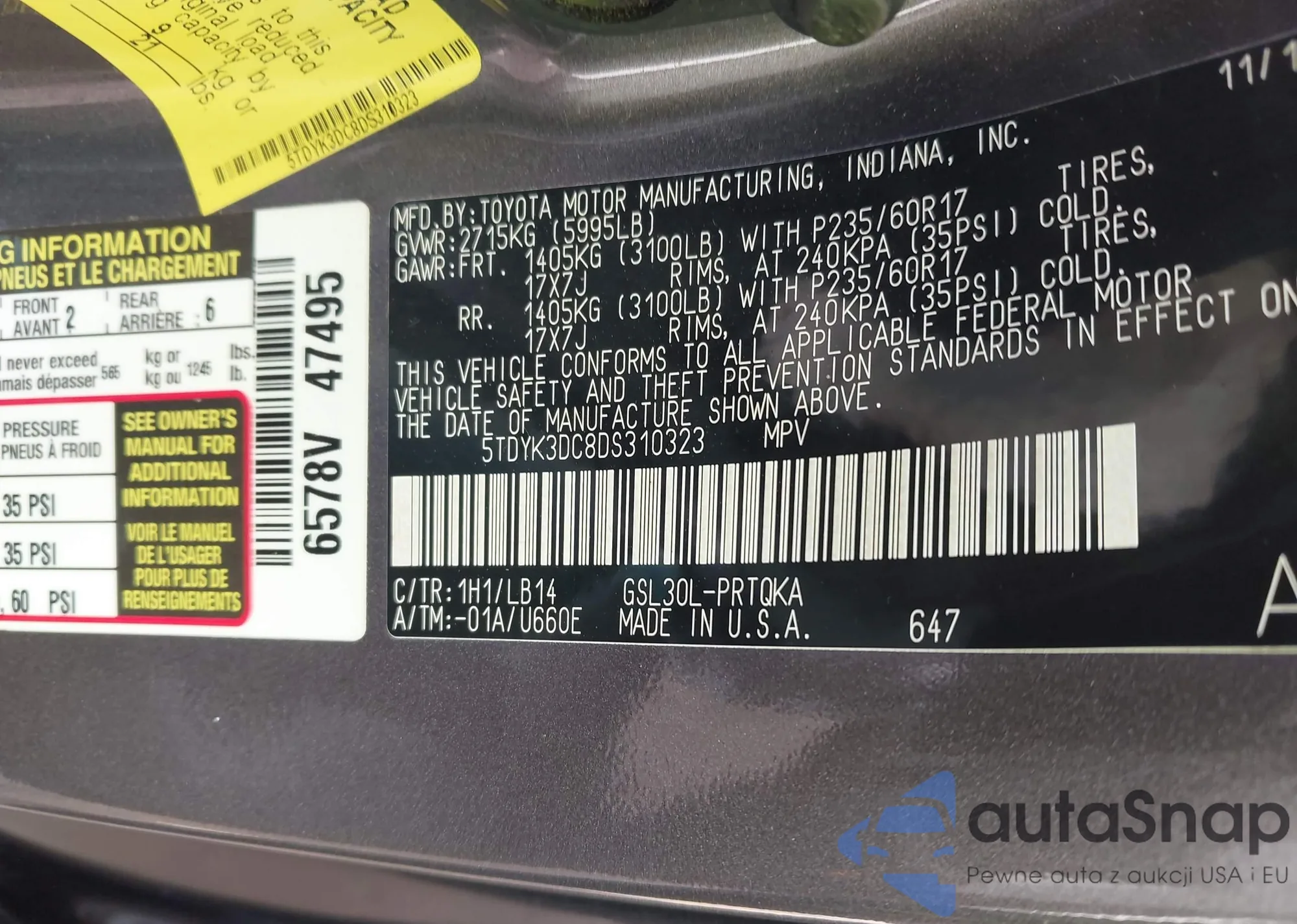 VIN: 5TDYK3DC8DS310323