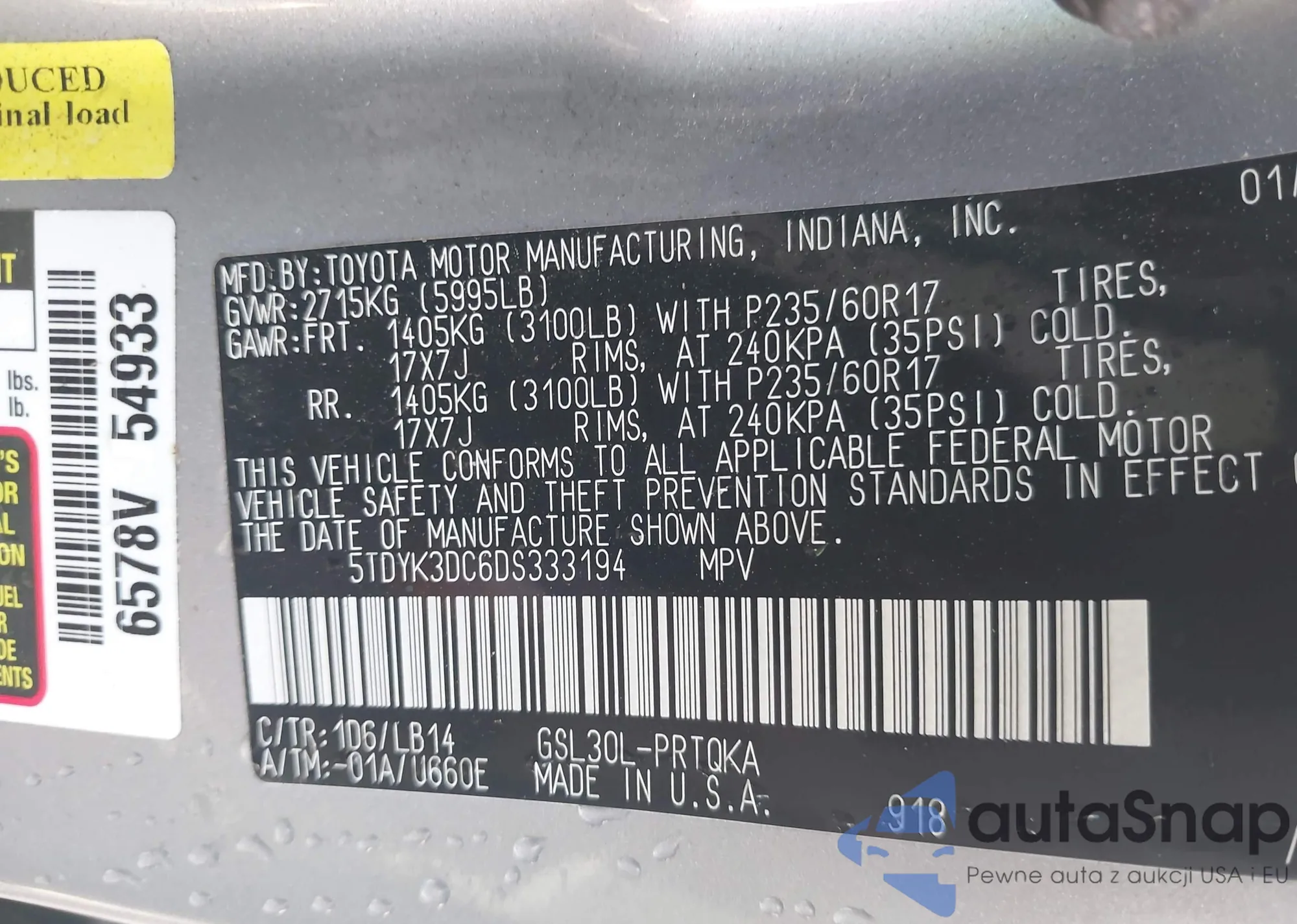 VIN: 5TDYK3DC6DS333194