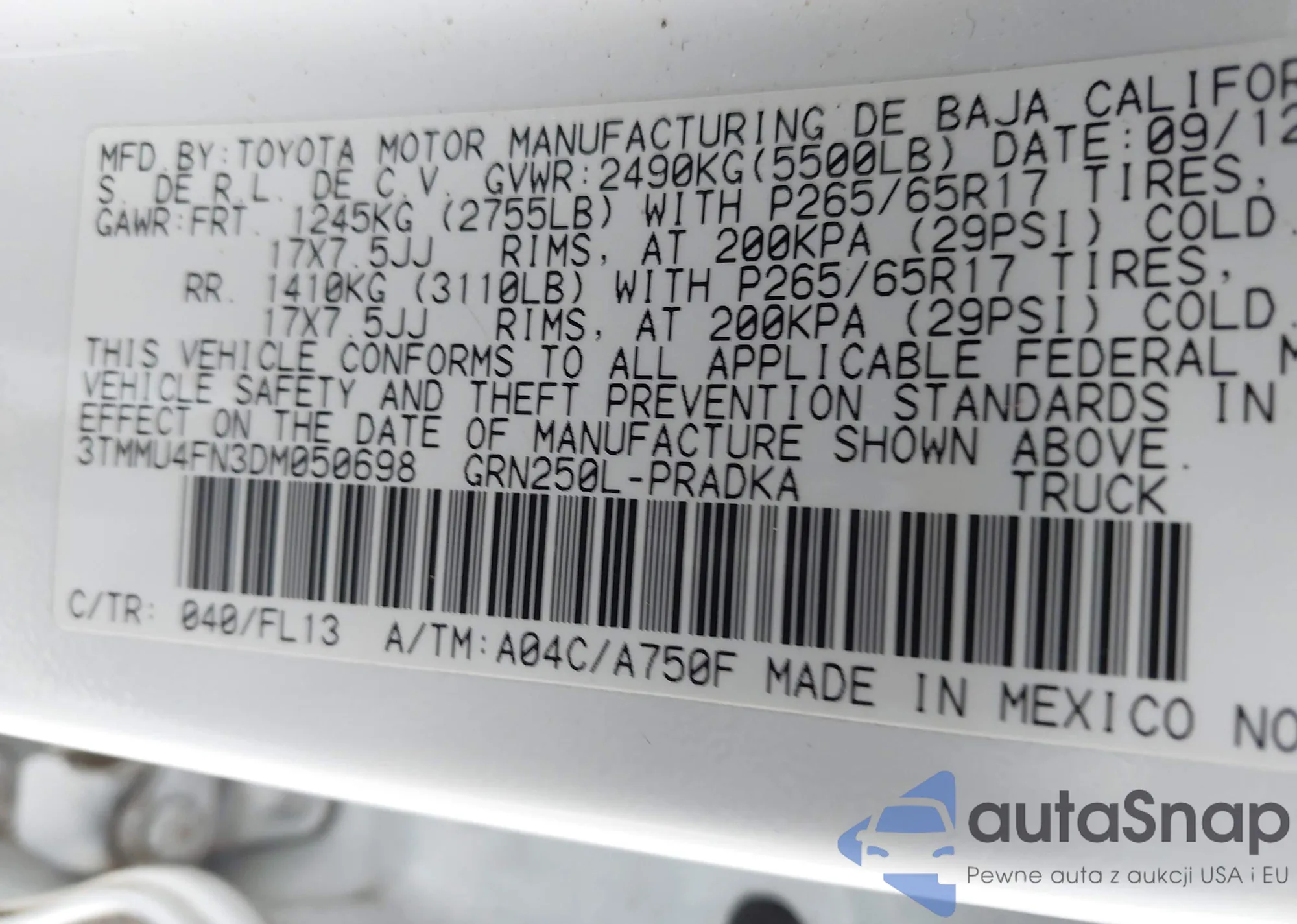 VIN: 3TMMU4FN3DM050698