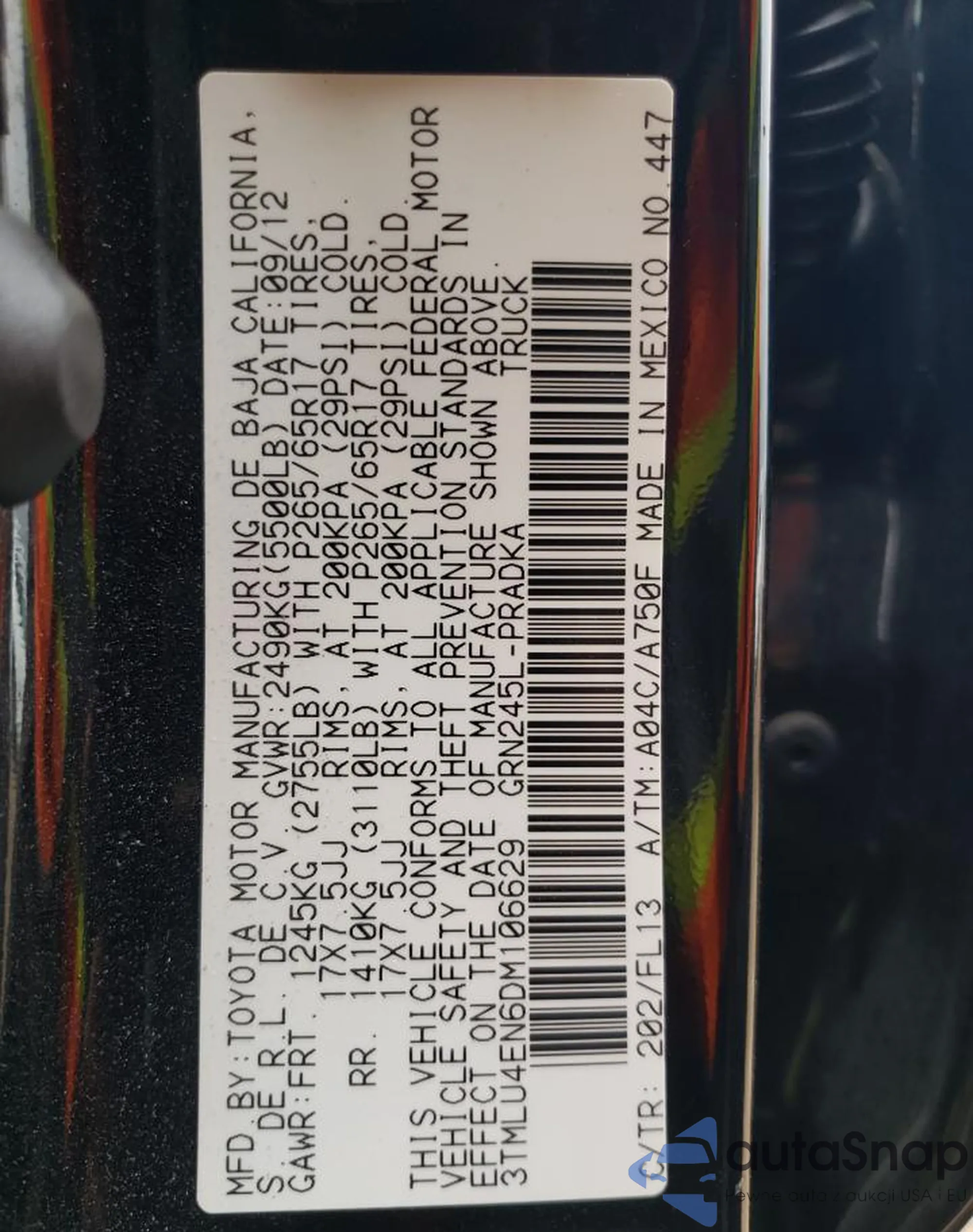 VIN: 3TMLU4EN6DM106629