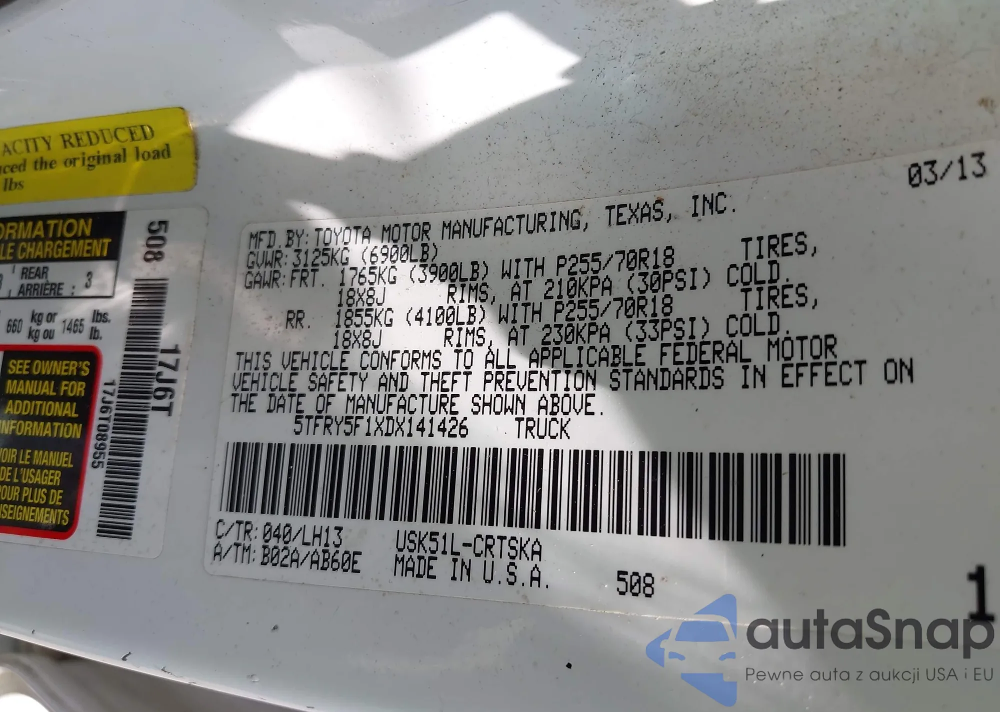 VIN: 5TFRY5F1XDX141426