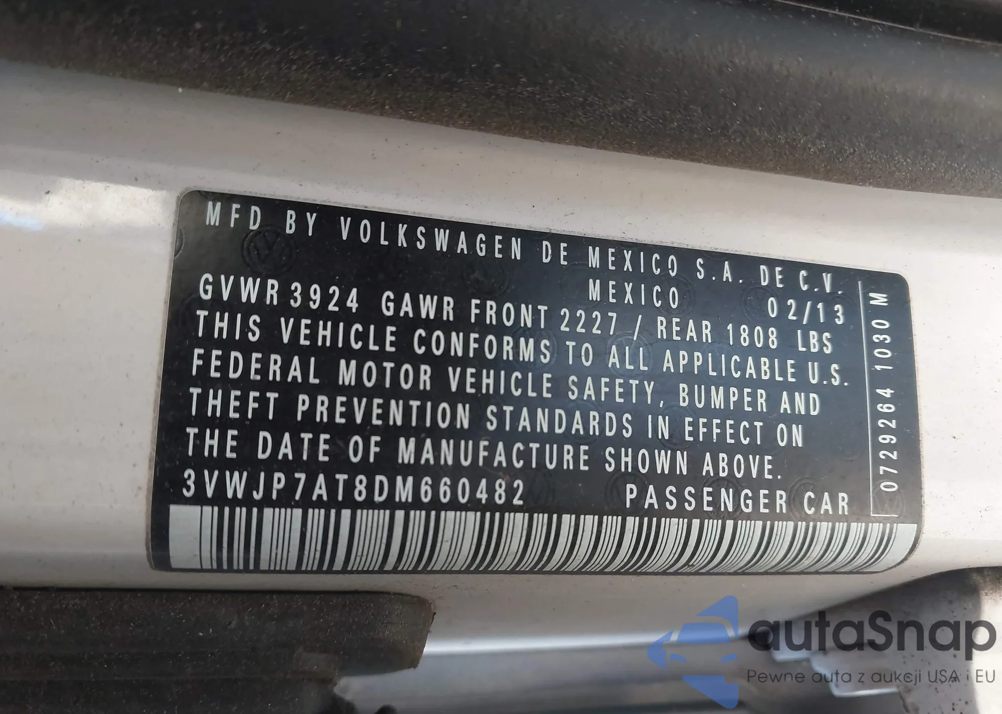 VIN: 3VWJP7AT8DM660482