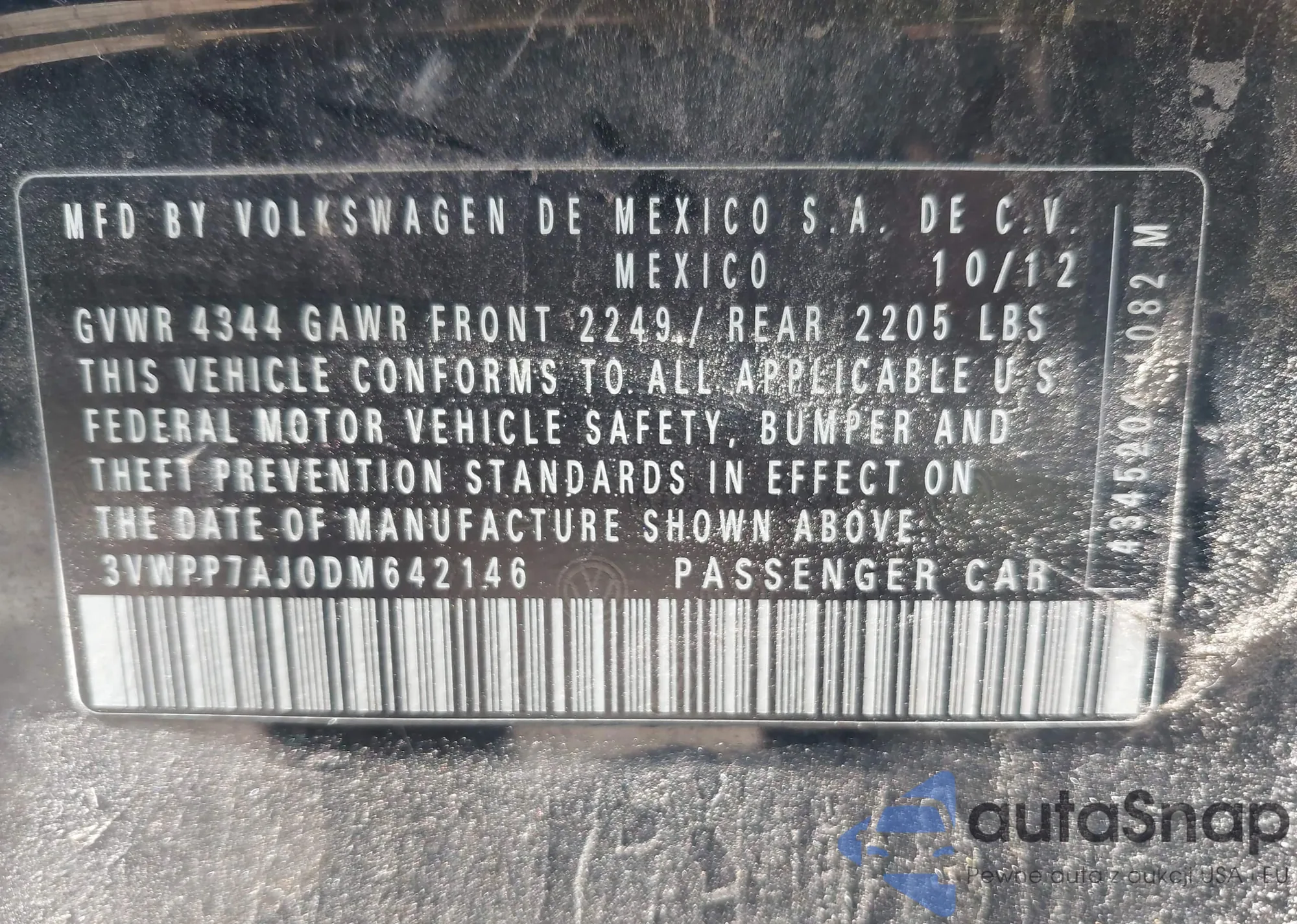 VIN: 3VWPP7AJ0DM642146