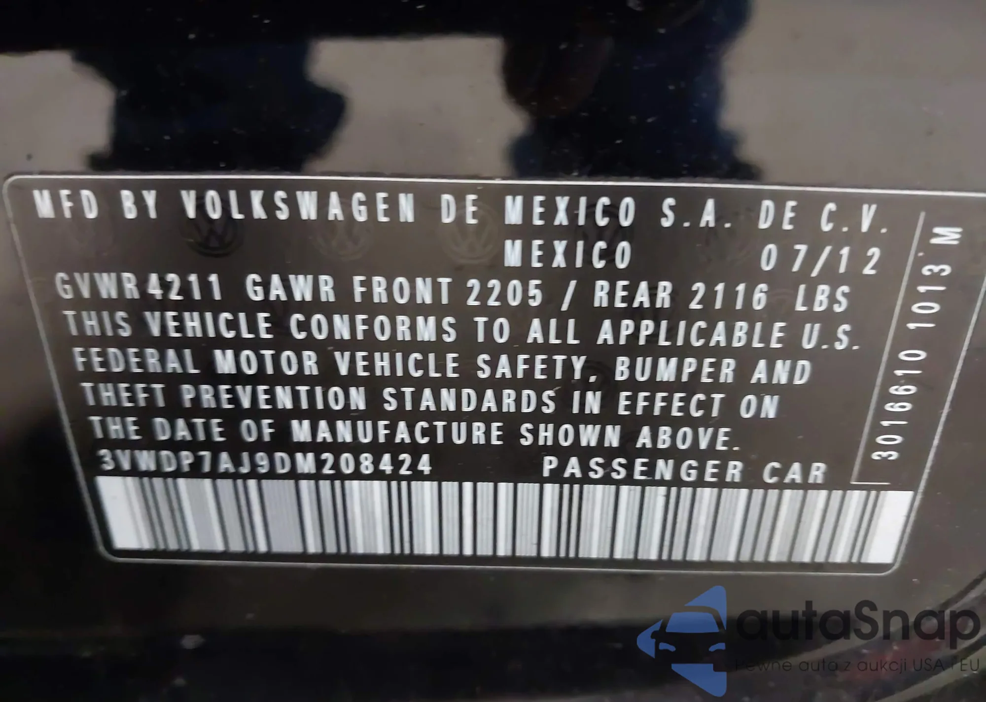 • VIN: 3VWDP7AJ9DM208424