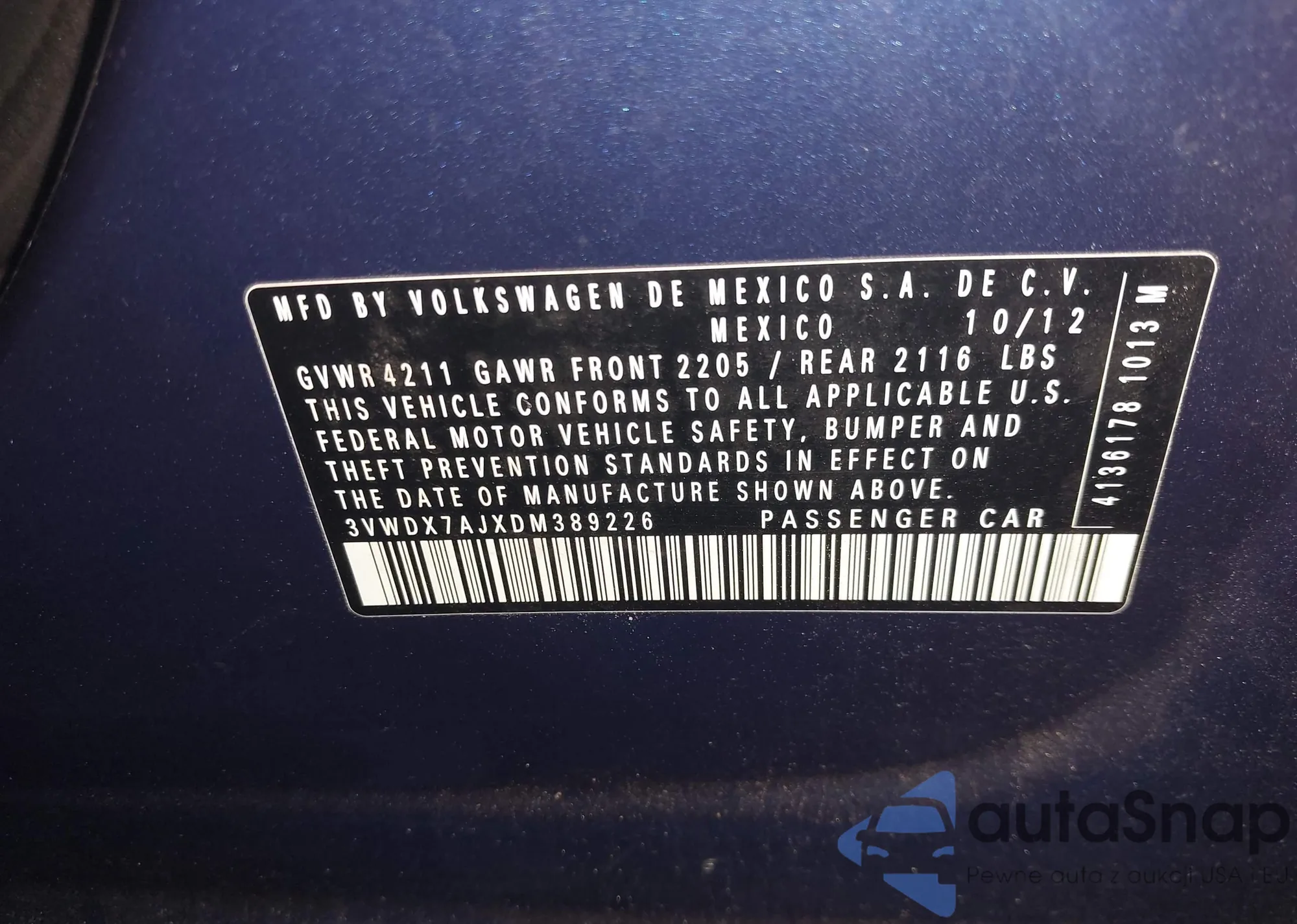 VIN: 3VWDX7AJXDM389226