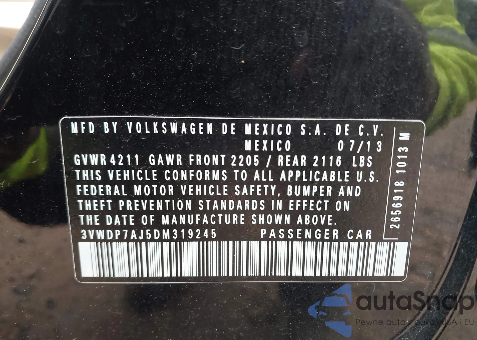 VIN: 3VWDP7AJ5DM319245