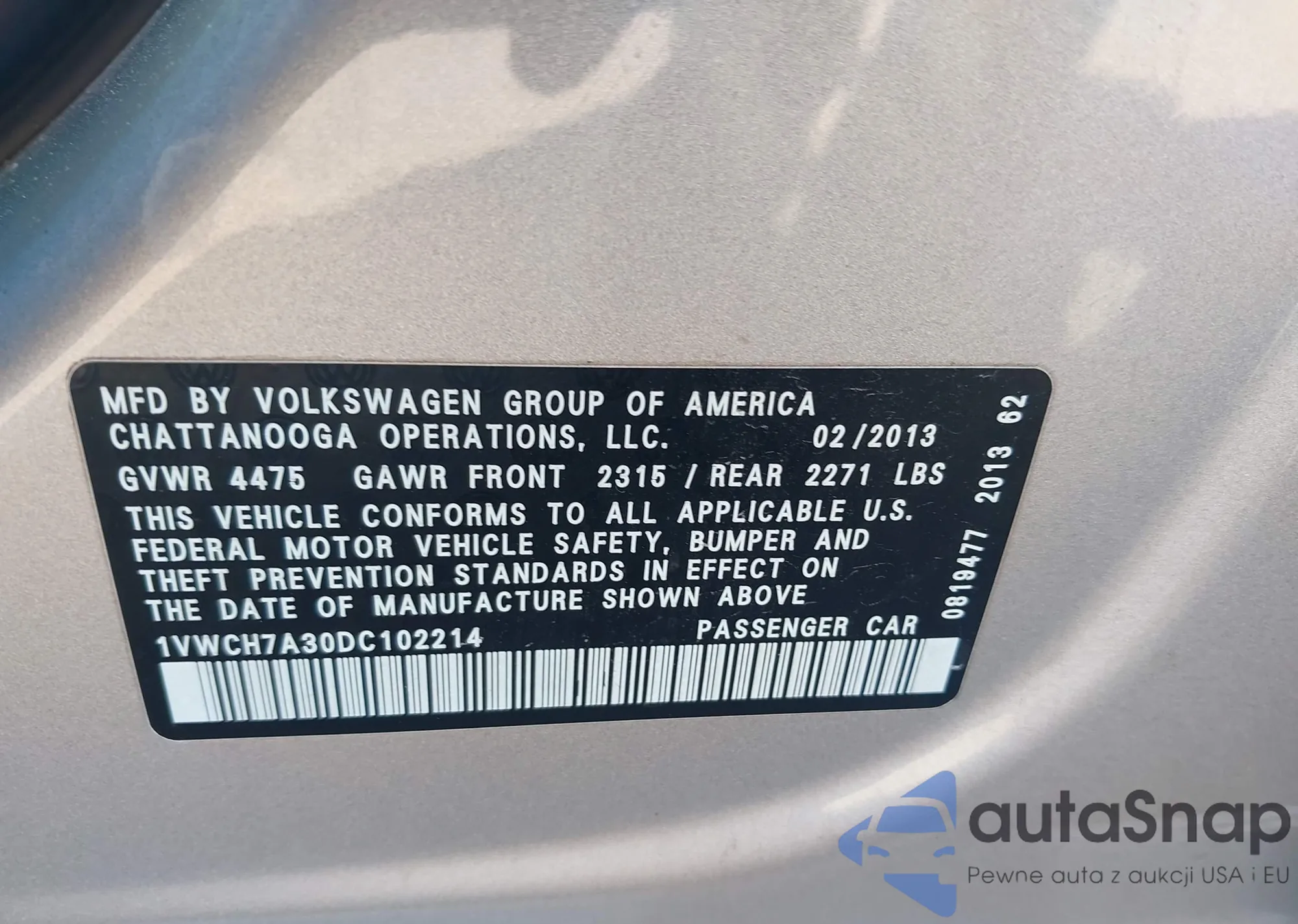 VIN: 1VWCH7A30DC102214