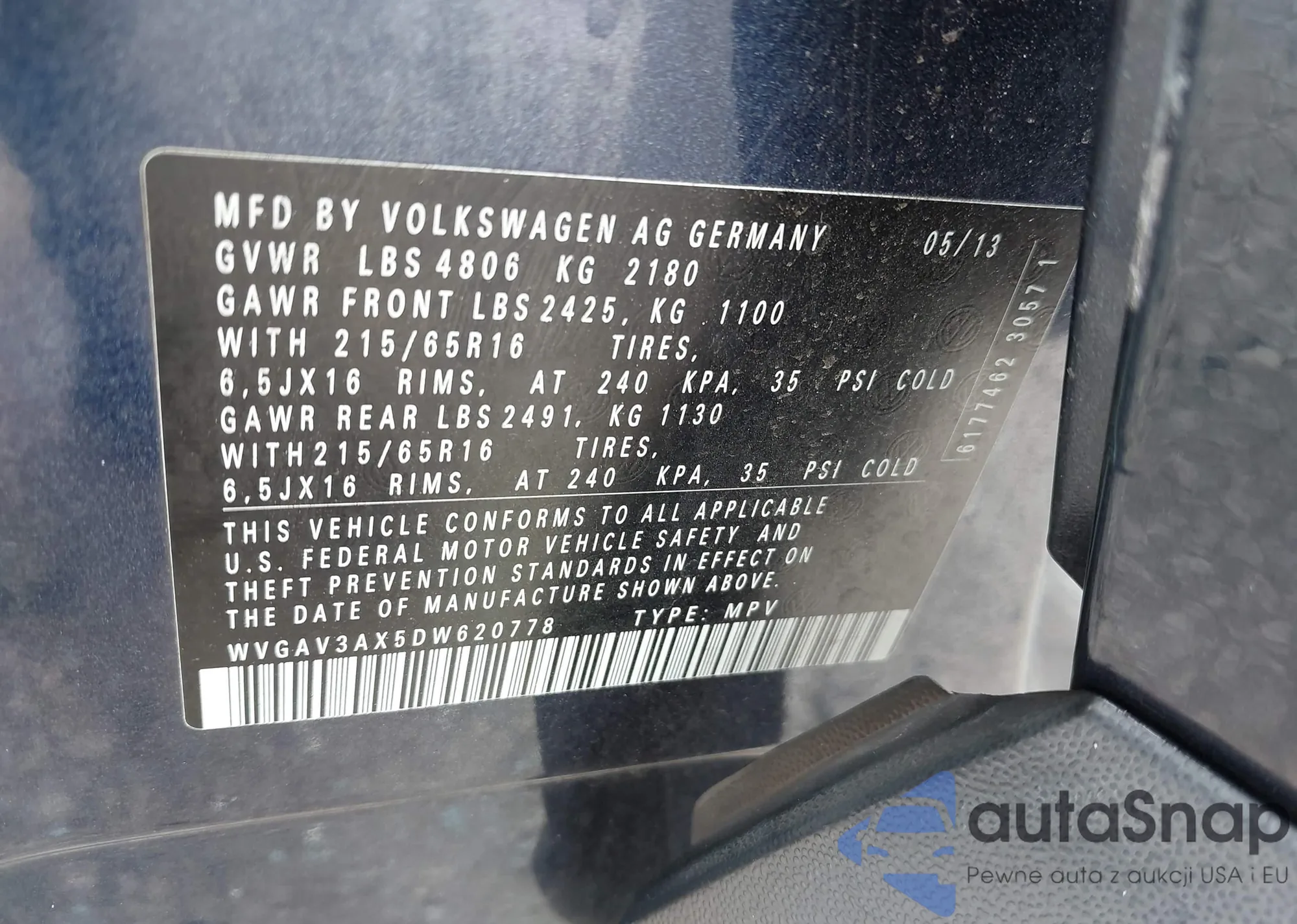 VIN: WVGAV3AX5DW620778