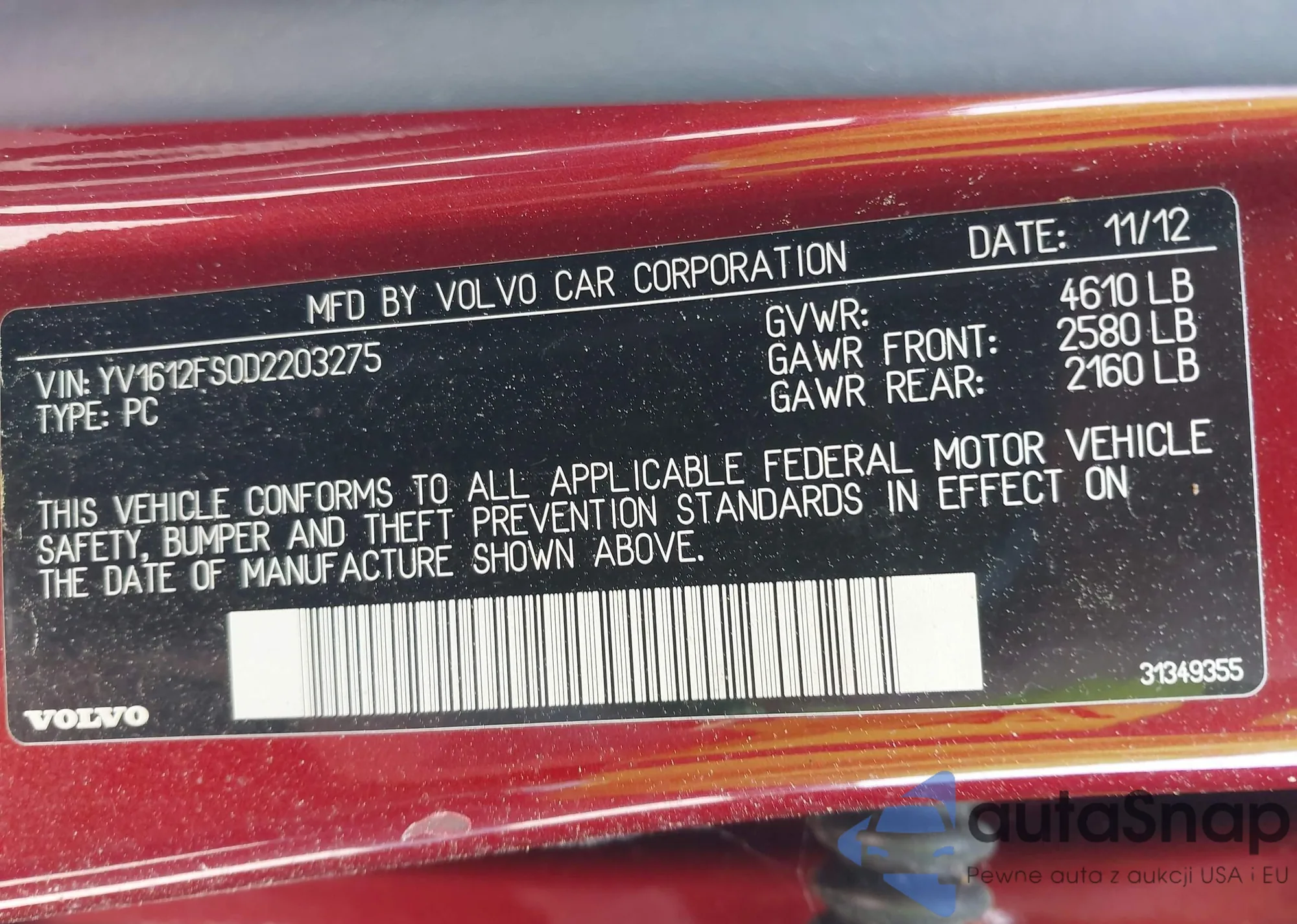 VIN: YV1612FS0D2203275