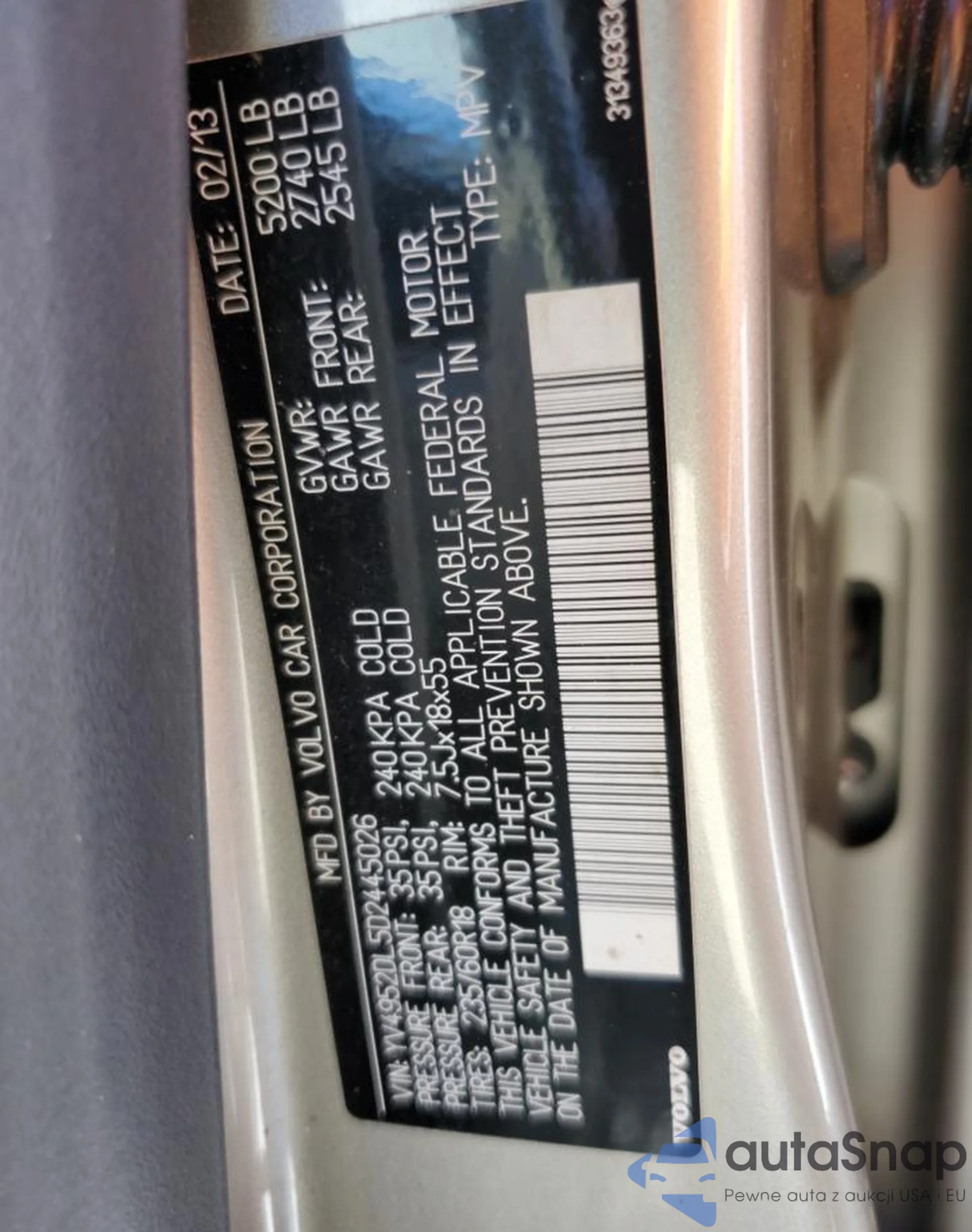 VIN: YV4952DL5D2445026