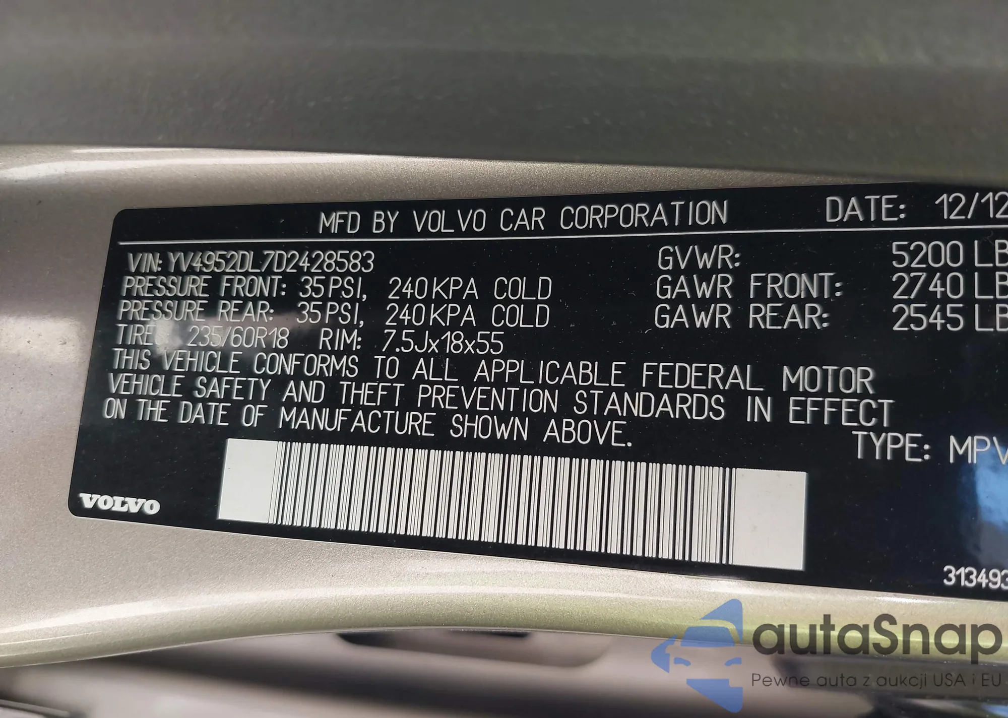 The car Volvo XC60 2013 (VIN YV4952DL7D2428583) has not been auctioned before. The documents are clean, and the mileage matches or is below the market average. Sold by an insurance company – we recommend purchase. Delivery to the port will take approx. 6–8 weeks.
