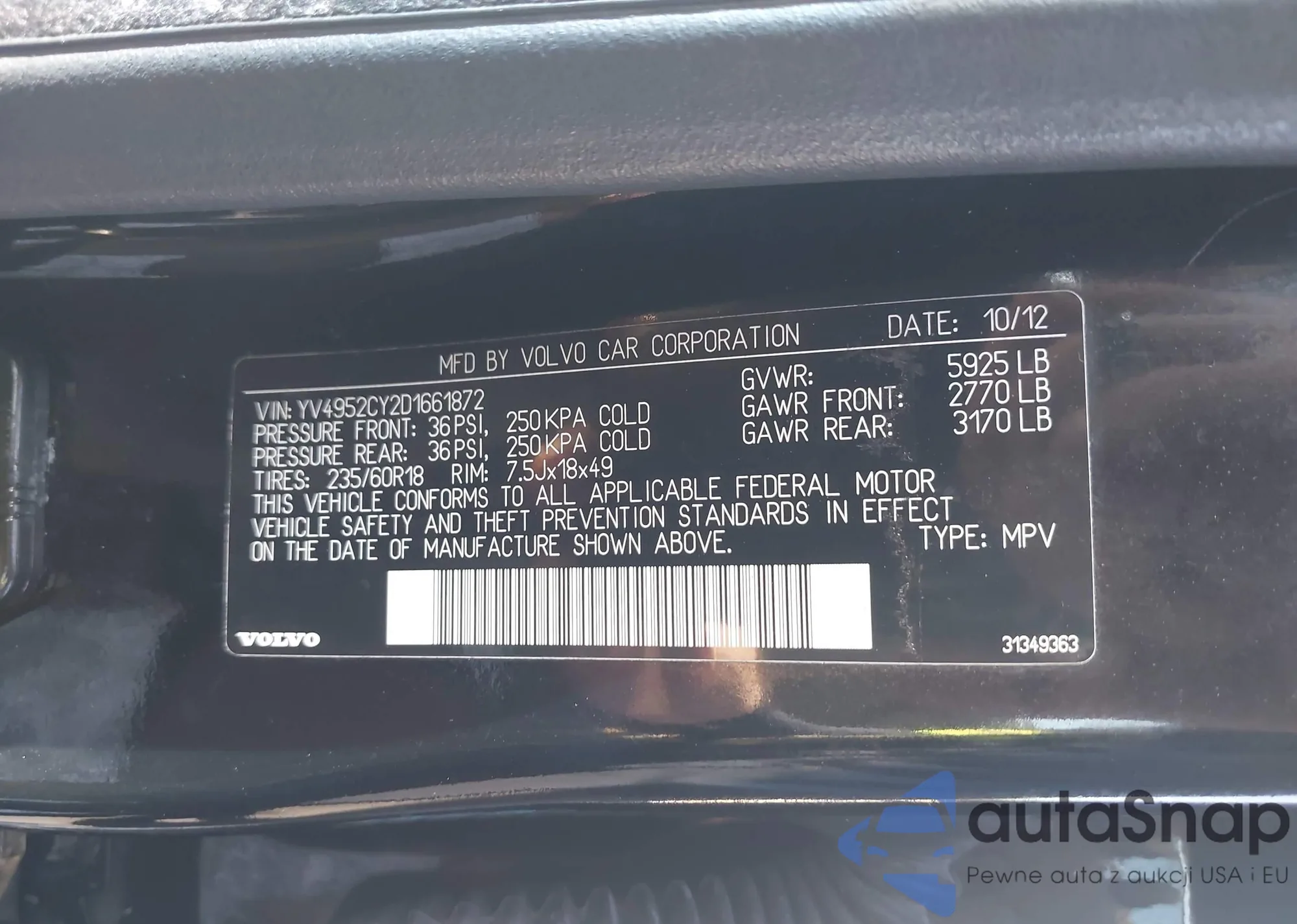 VIN: YV4952CY2D1661872
