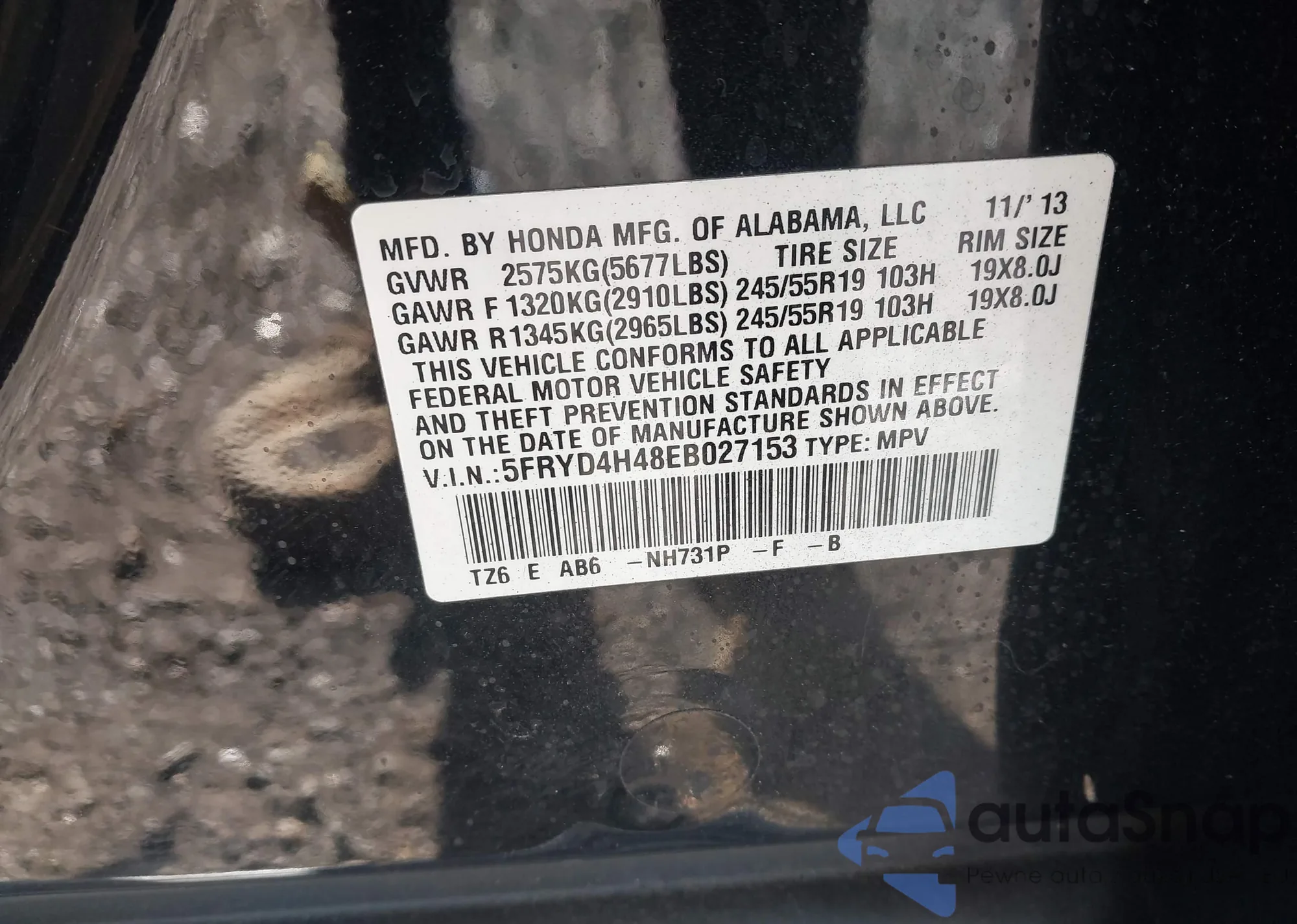 • VIN: 5FRYD4H48EB027153