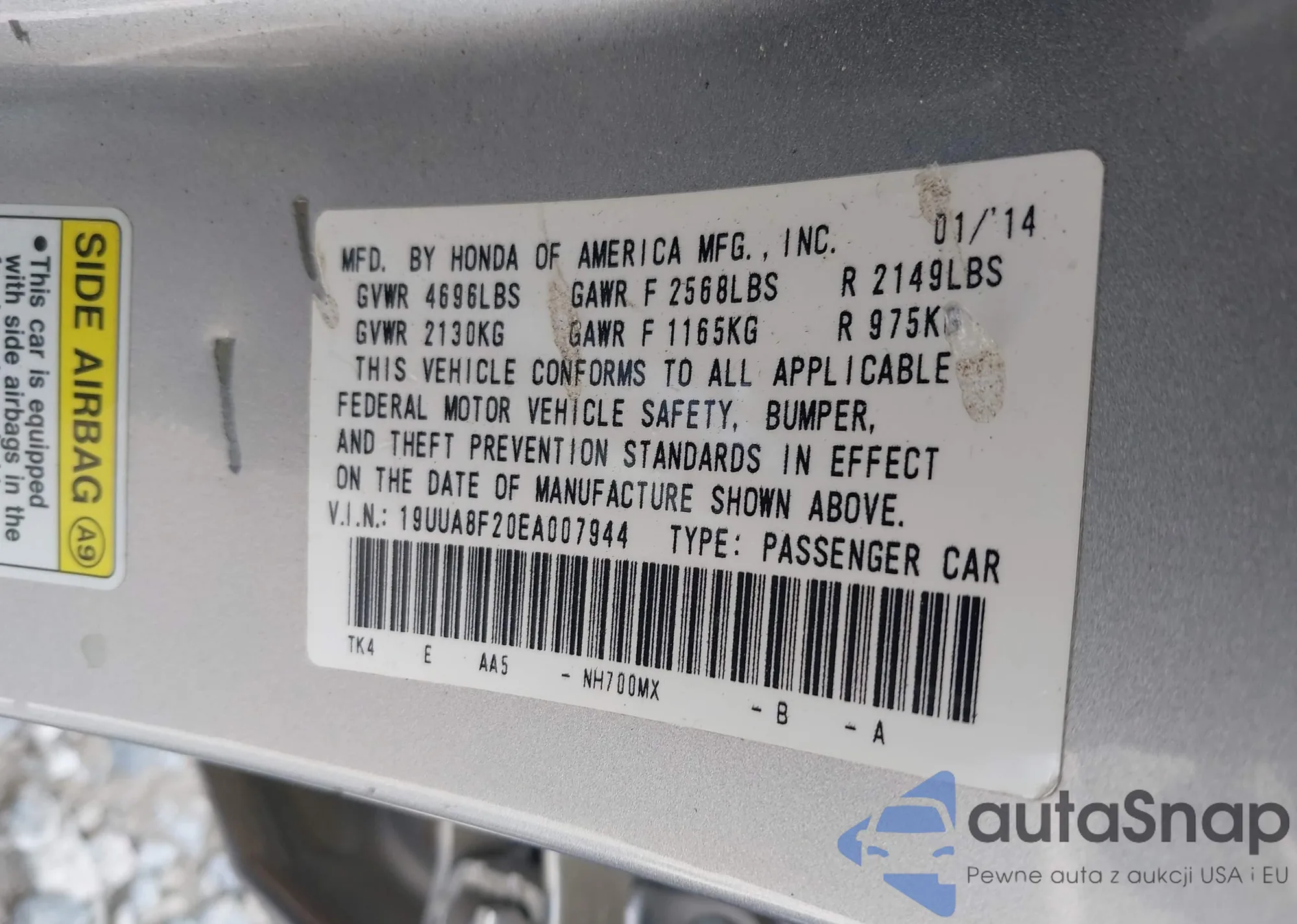 VIN: 19UUA8F20EA007944