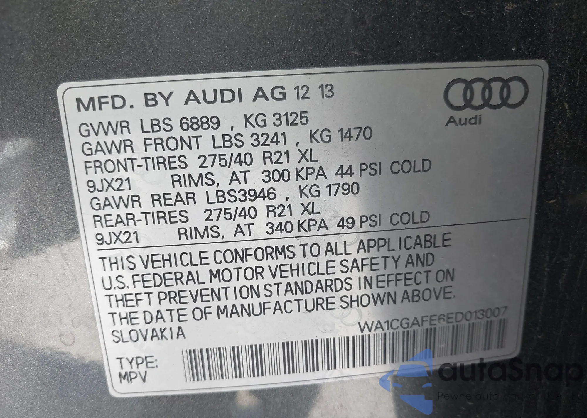 • VIN: WA1CGAFE6ED013007