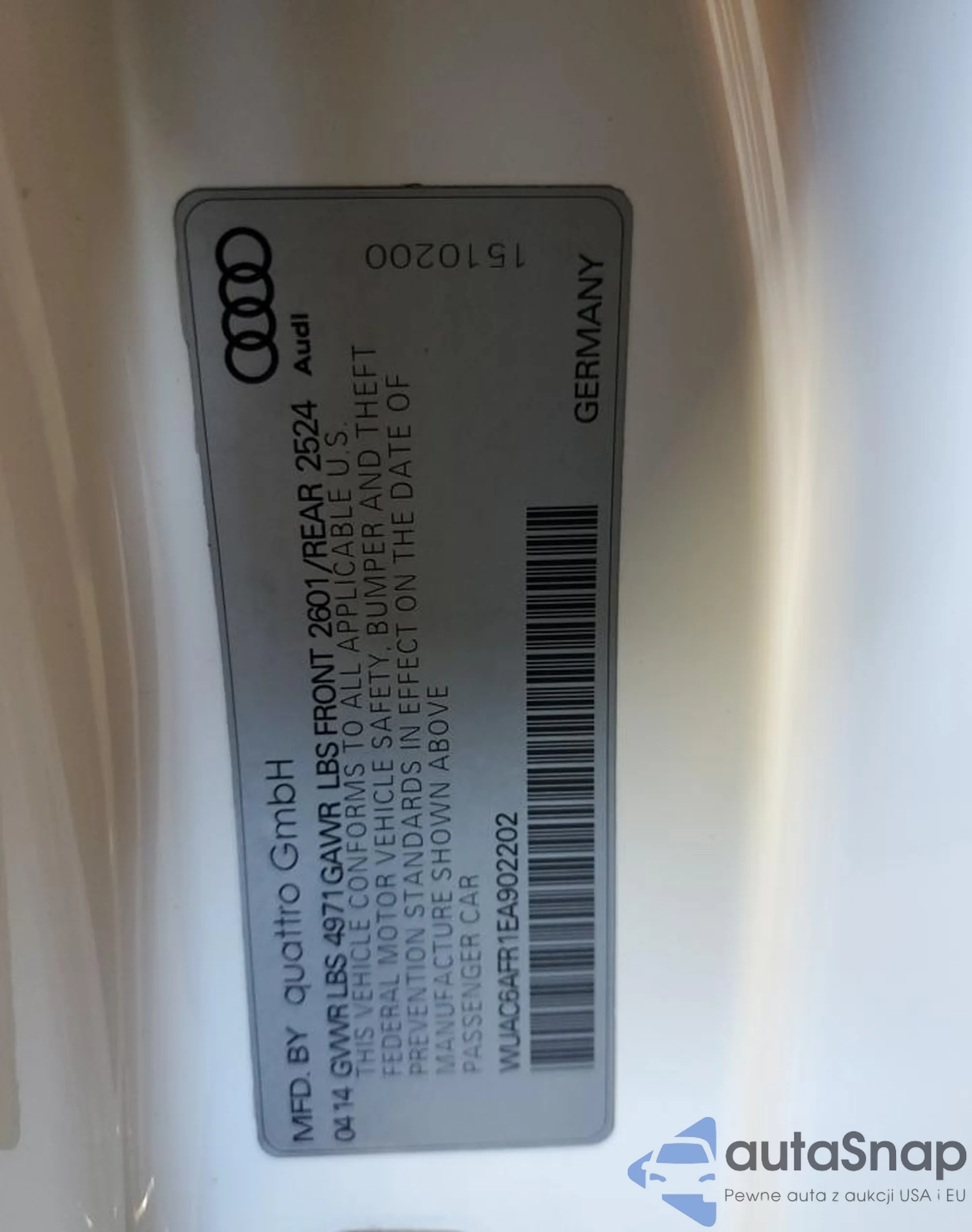 VIN: WUAC6AFR1EA902202