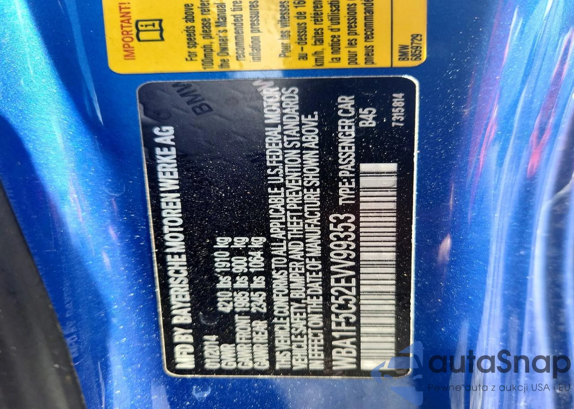 The car BMW 2er 2014 (VIN WBA1F5C52EVV99353) has not been auctioned before. The documents are clean, and the mileage matches or is below the market average. Sold by an insurance company – we recommend purchase. Delivery to the port will take approx. 6–8 weeks.