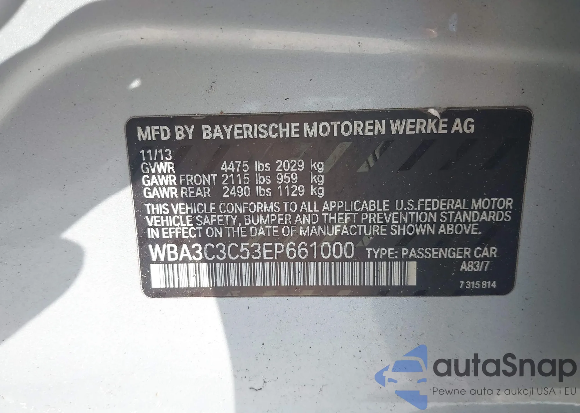 VIN: WBA3C3C53EP661000