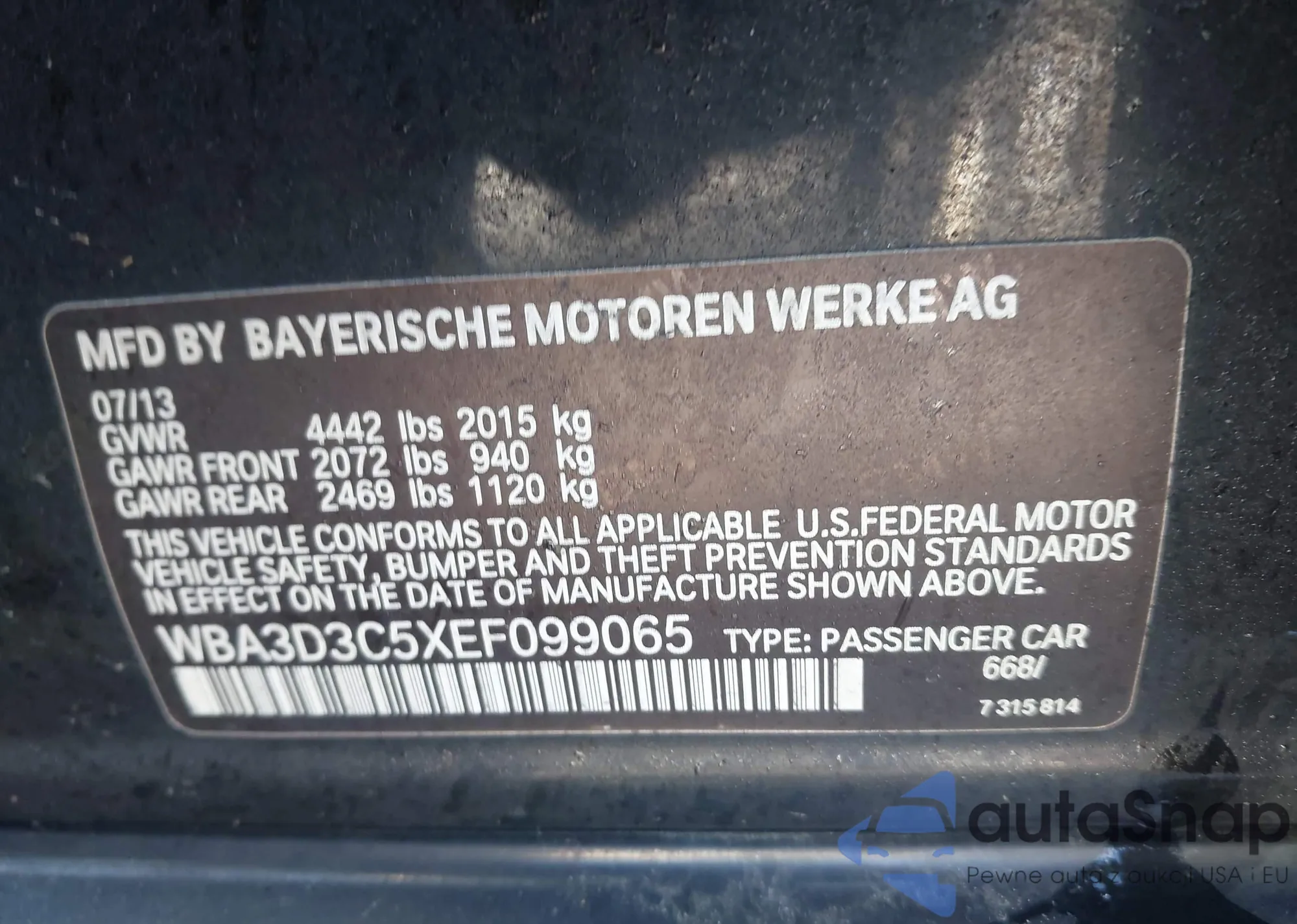 • VIN: WBA3D3C5XEF099065