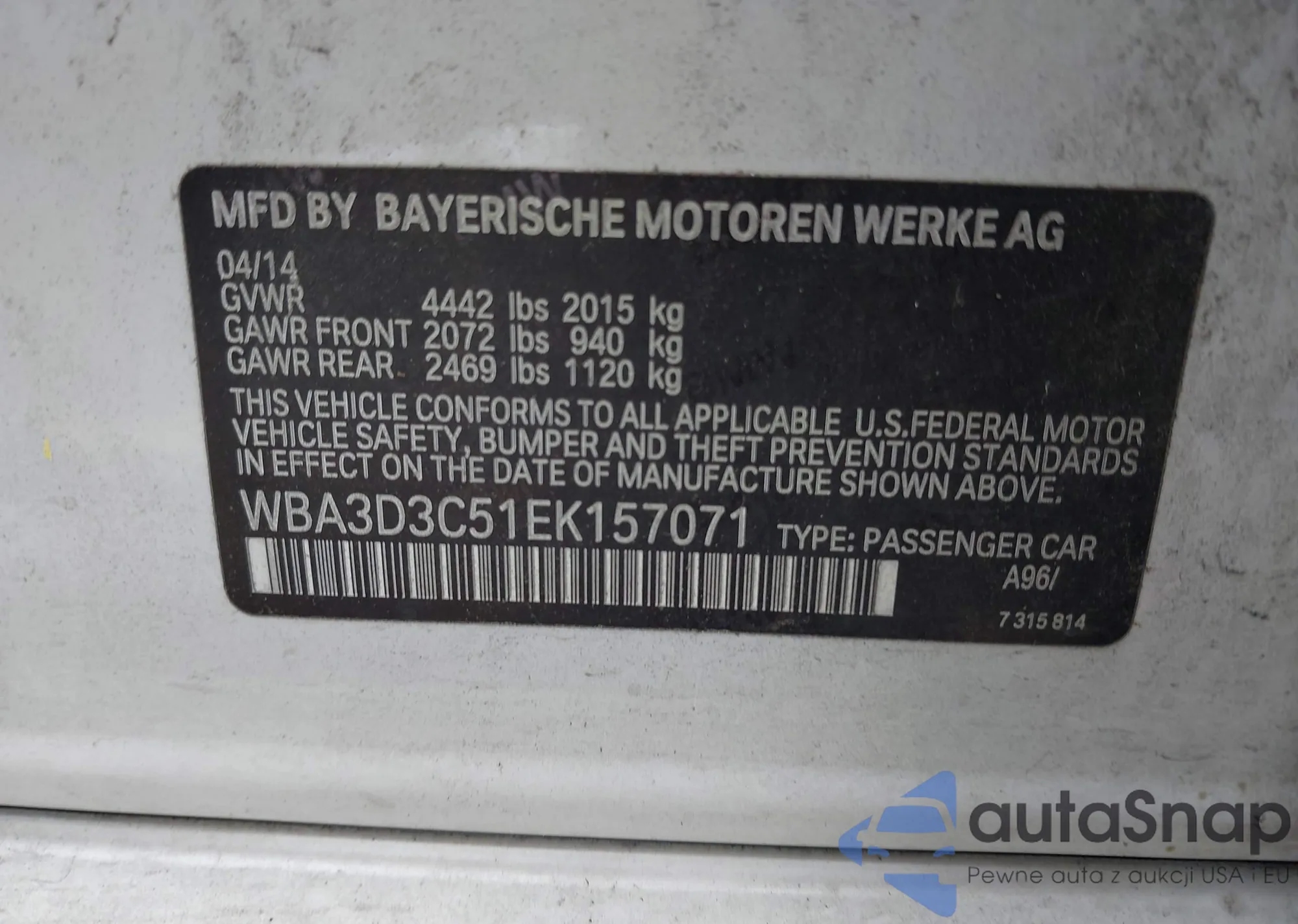 VIN: WBA3D3C51EK157071