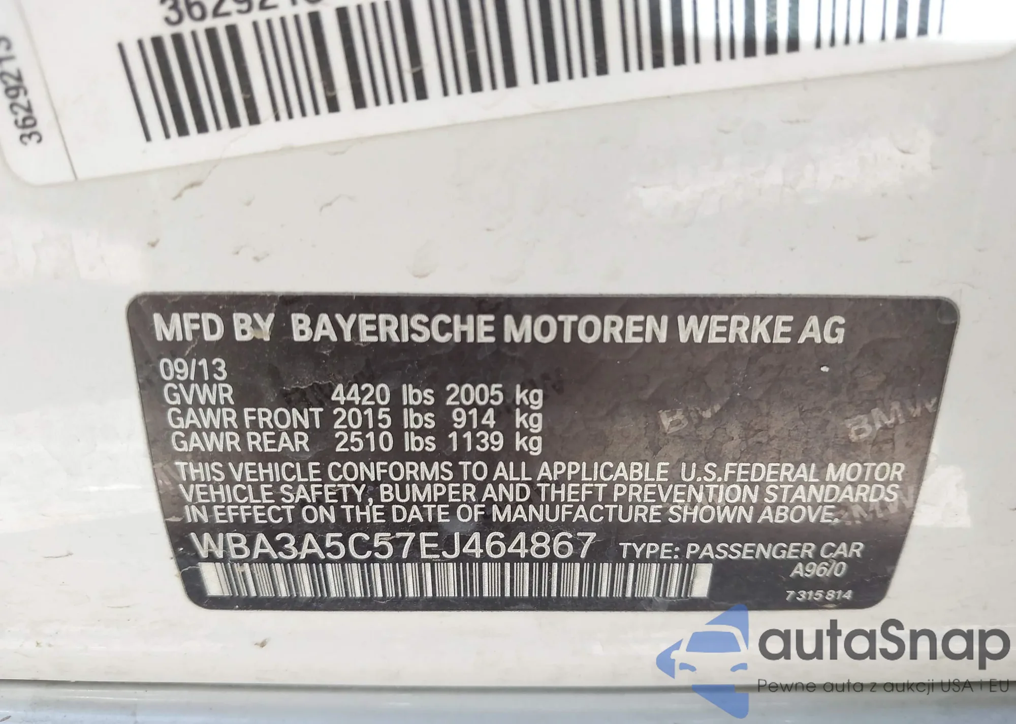 VIN: WBA3A5C57EJ464867