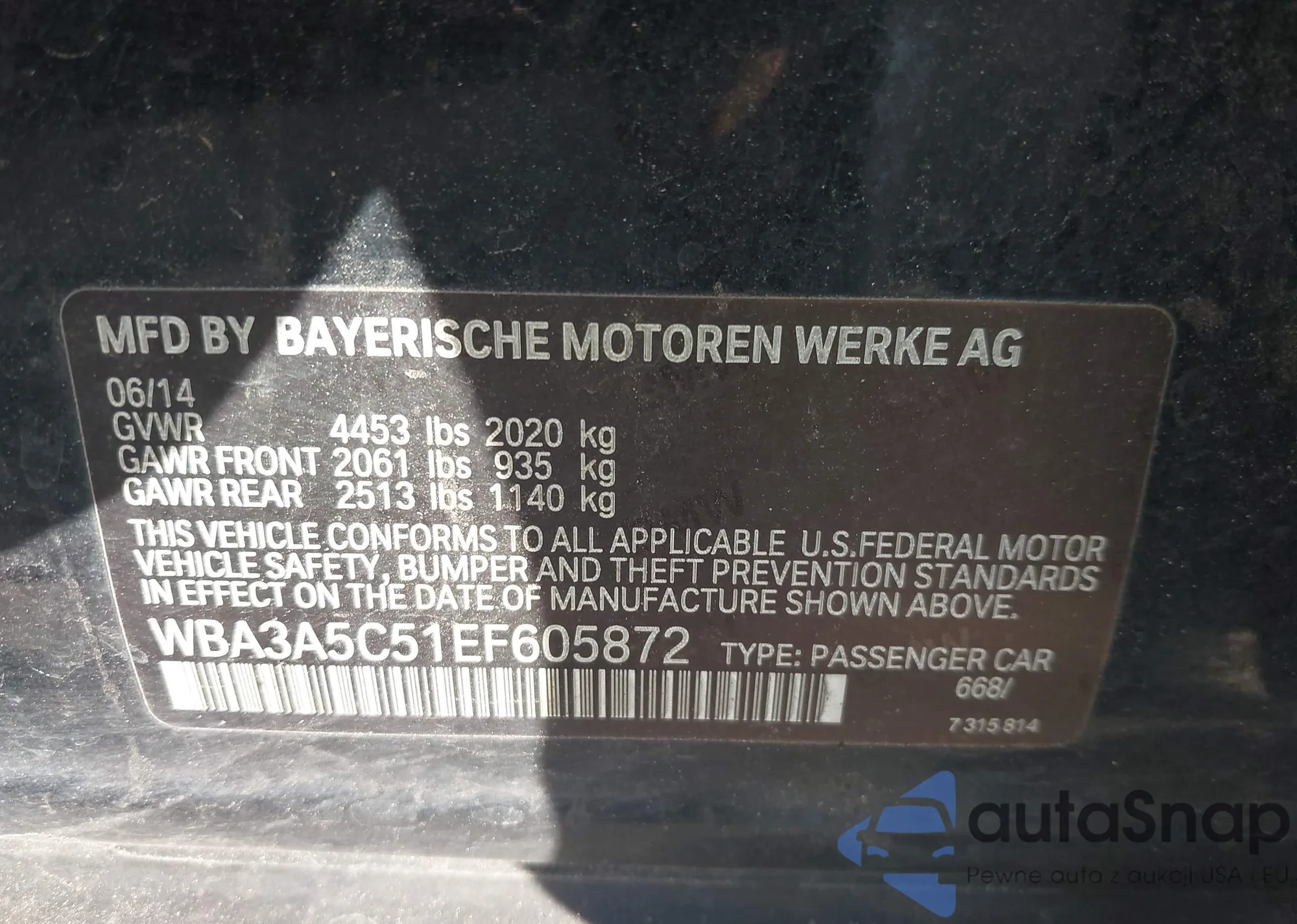 VIN: WBA3A5C51EF605872