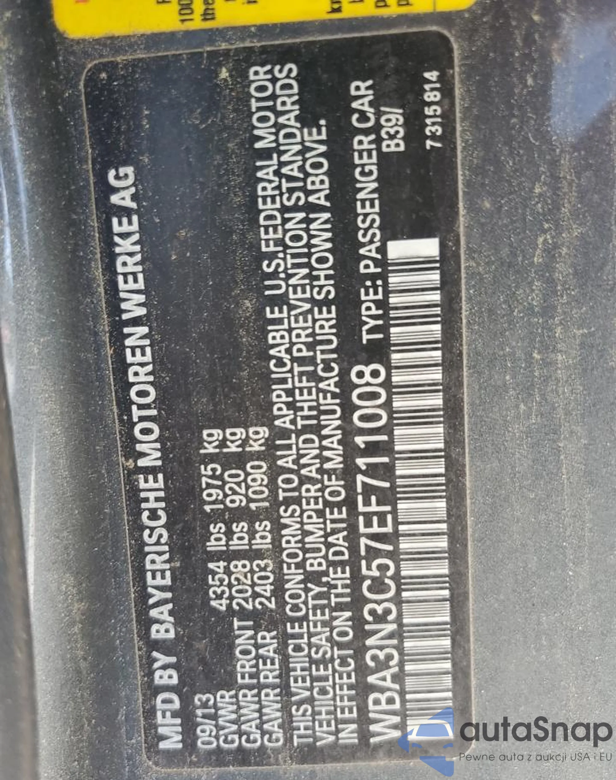 VIN: WBA3N3C57EF711008