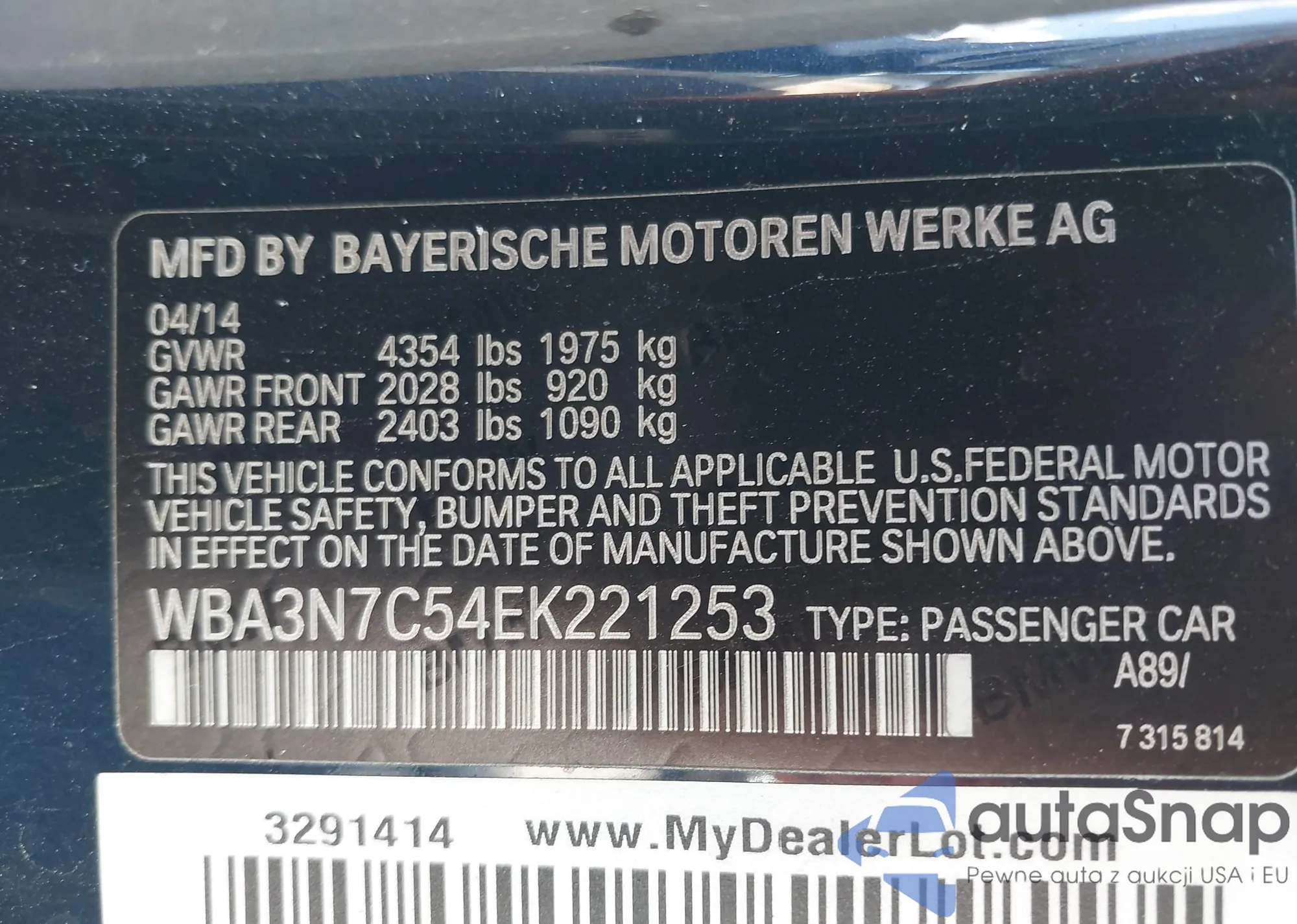 VIN: WBA3N7C54EK221253