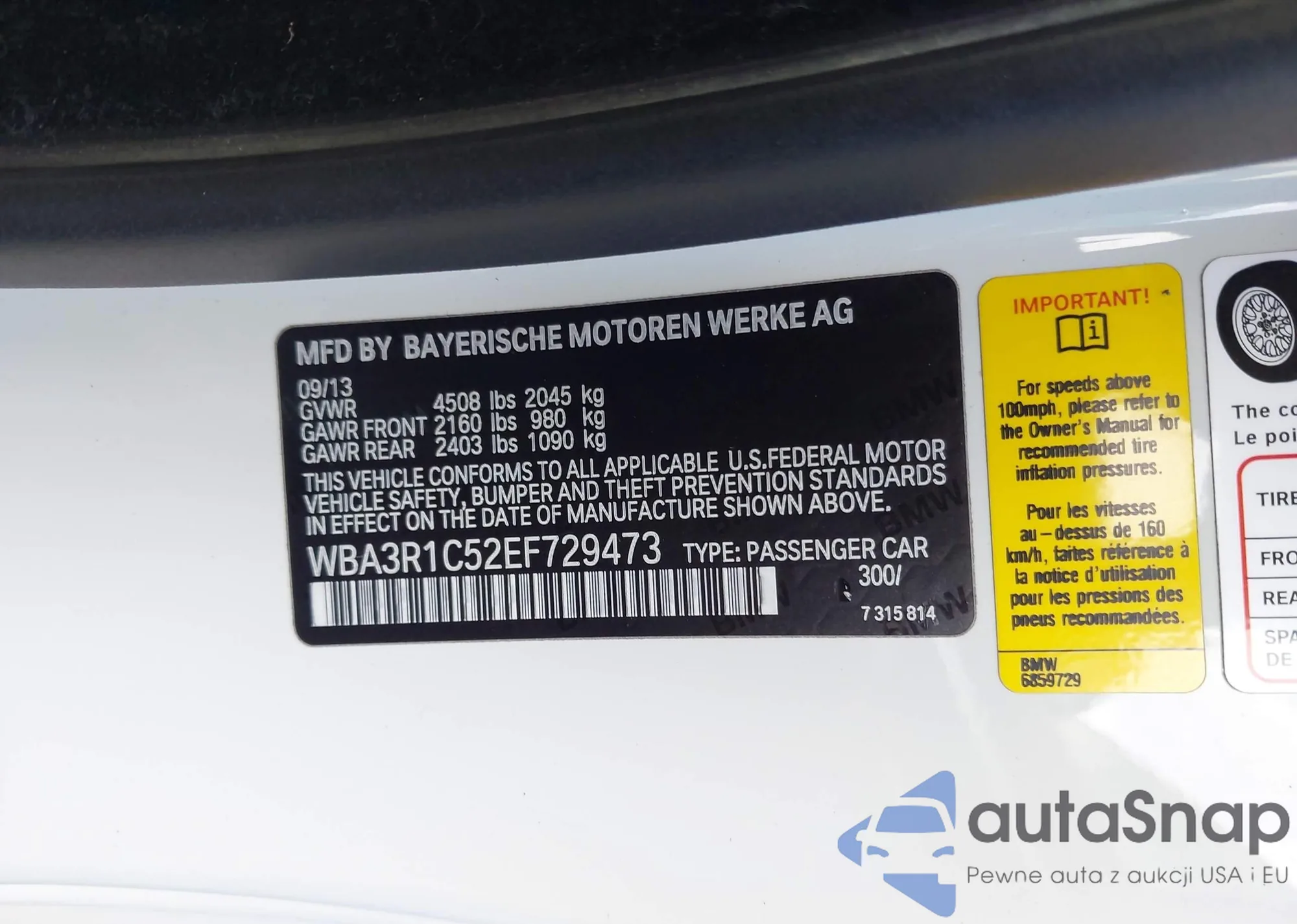 VIN: WBA3R1C52EF729473