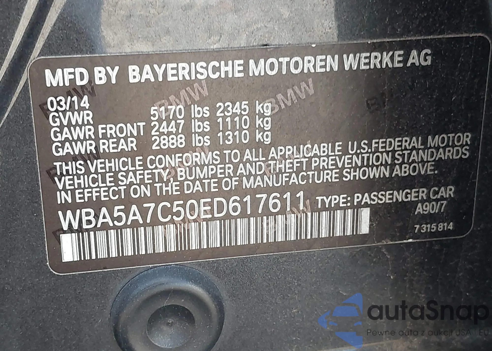 VIN: WBA5A7C50ED617611