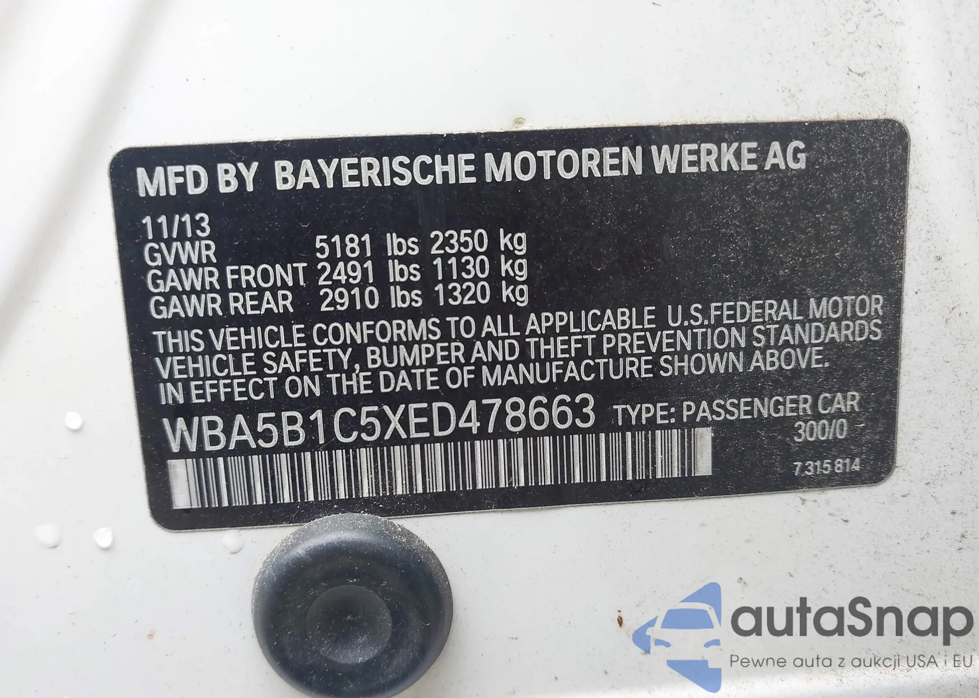 VIN: WBA5B1C5XED478663