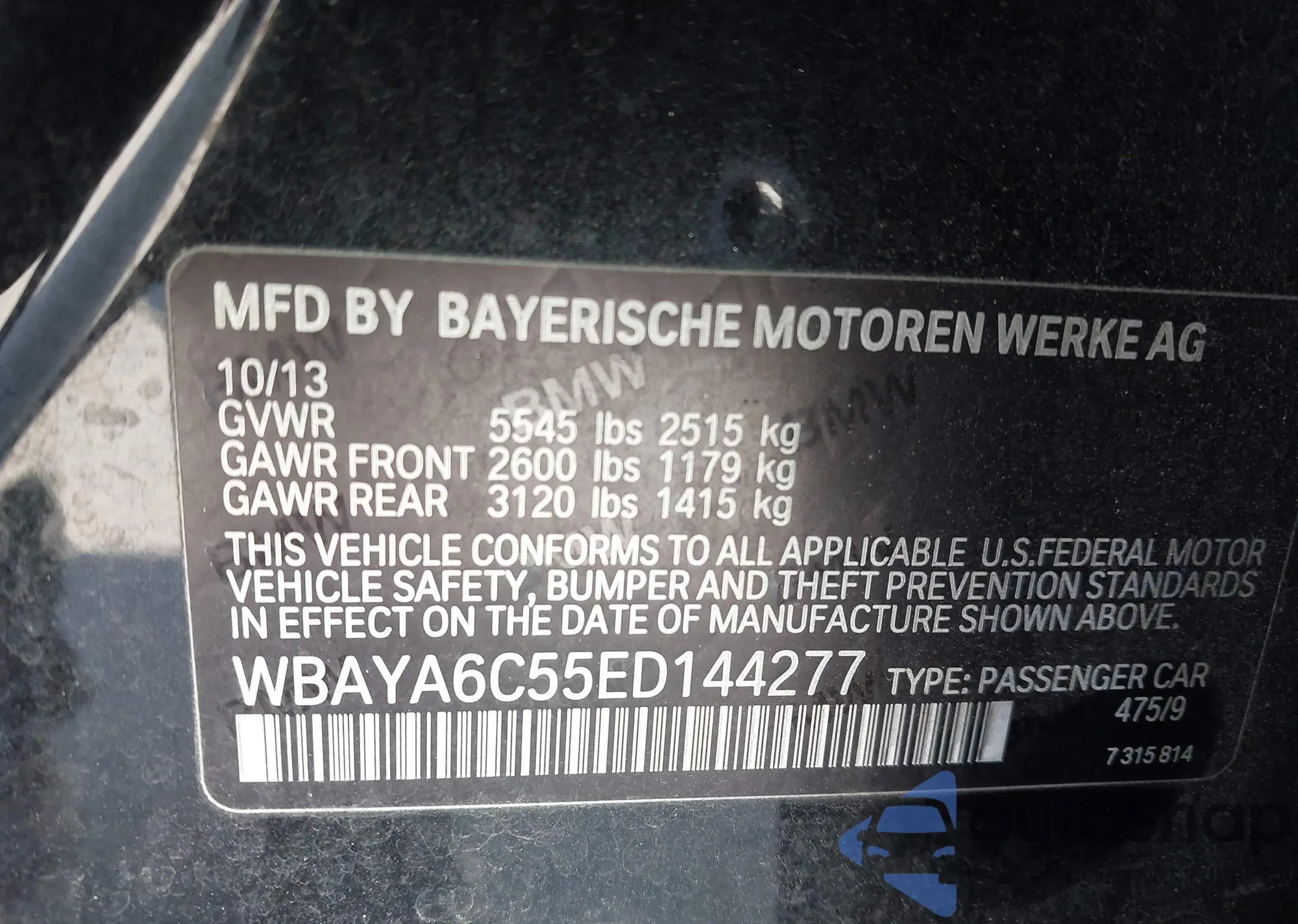 VIN: WBAYA6C55ED144277