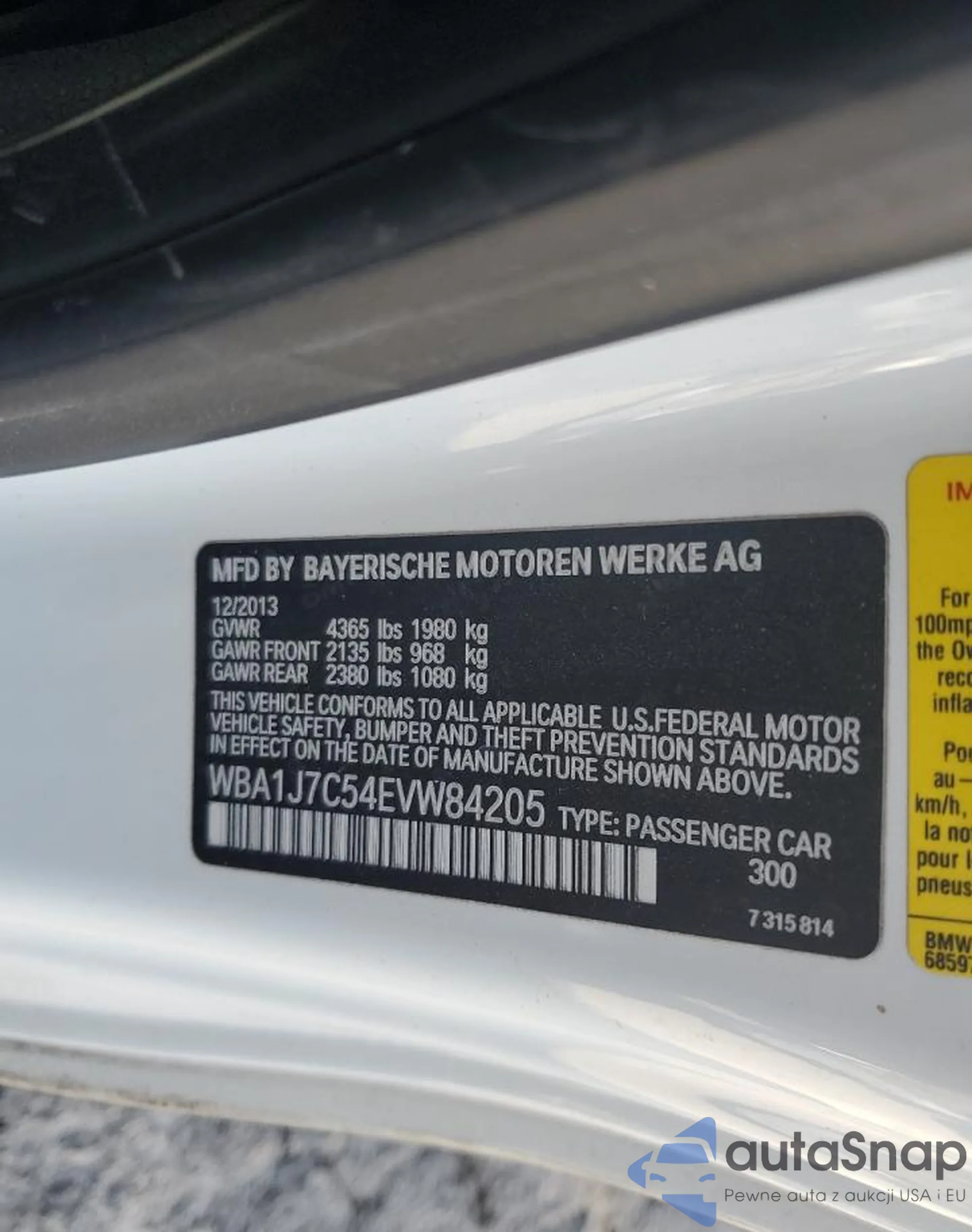 VIN: WBA1J7C54EVW84205