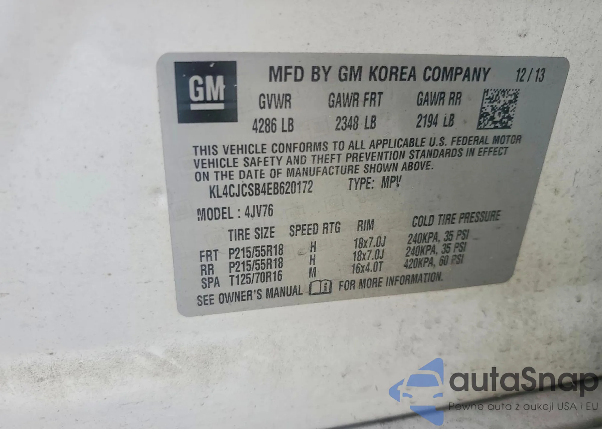 The car Buick Encore 2014 (VIN KL4CJCSB4EB620172) is sold by an unverified seller. We recommend checking the Carfax report and confirming registration possibilities before purchase.