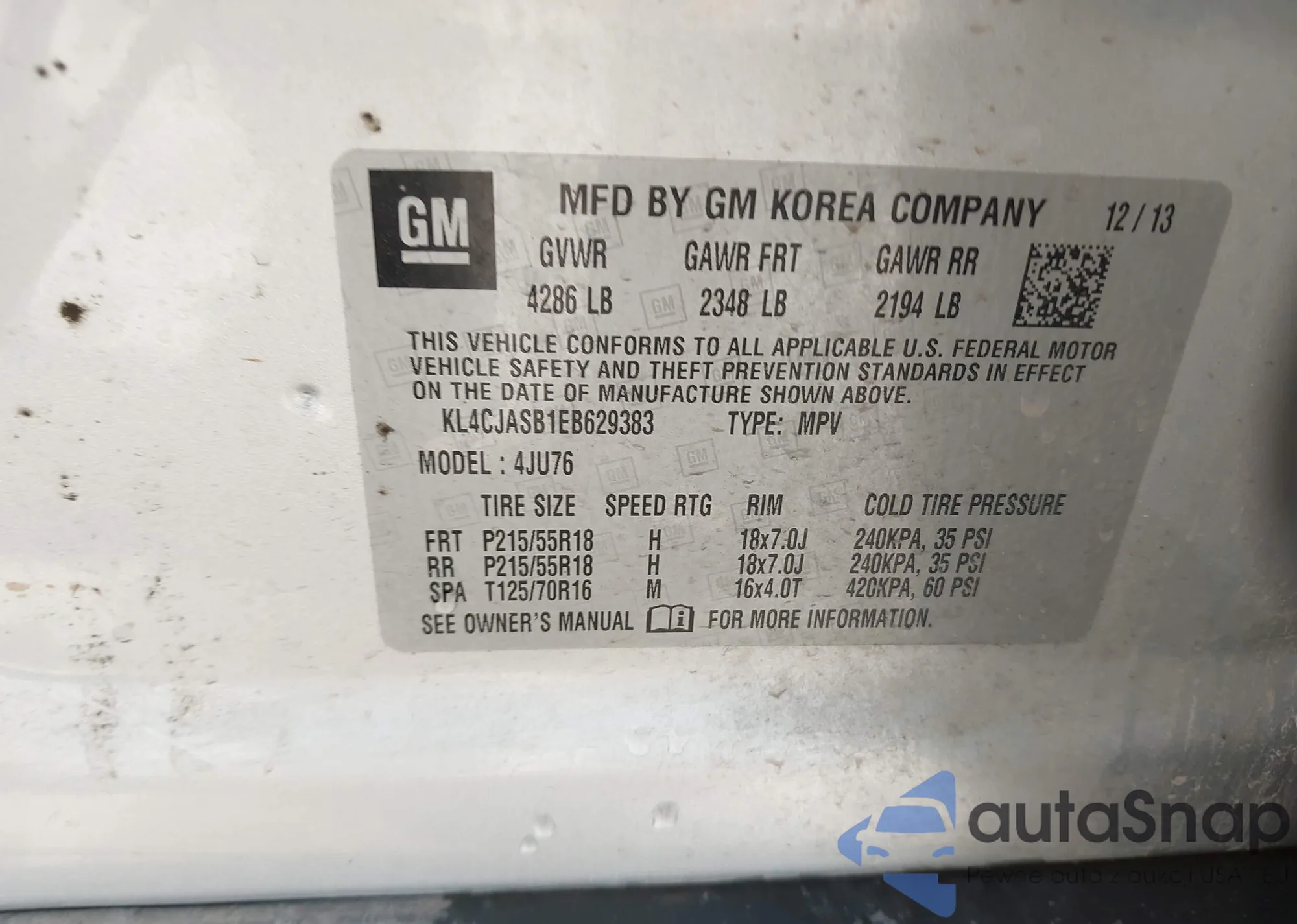 VIN: KL4CJASB1EB629383