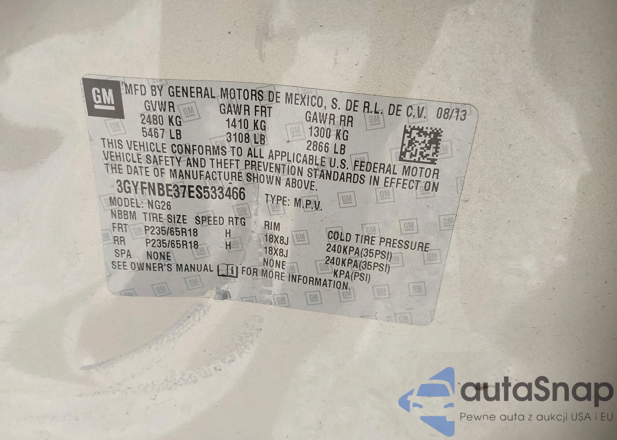 VIN: 3GYFNBE37ES533466