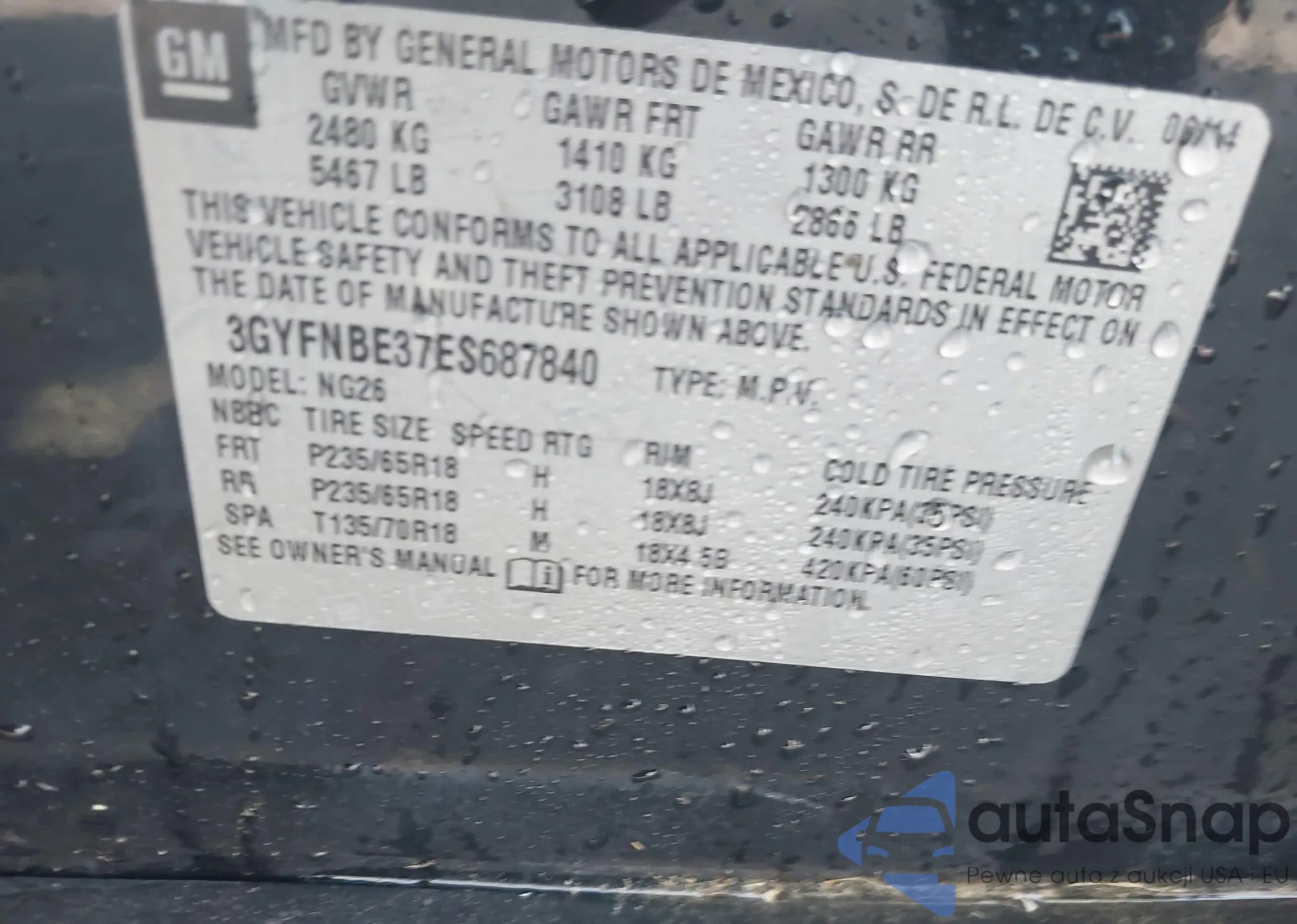 VIN: 3GYFNBE37ES687840