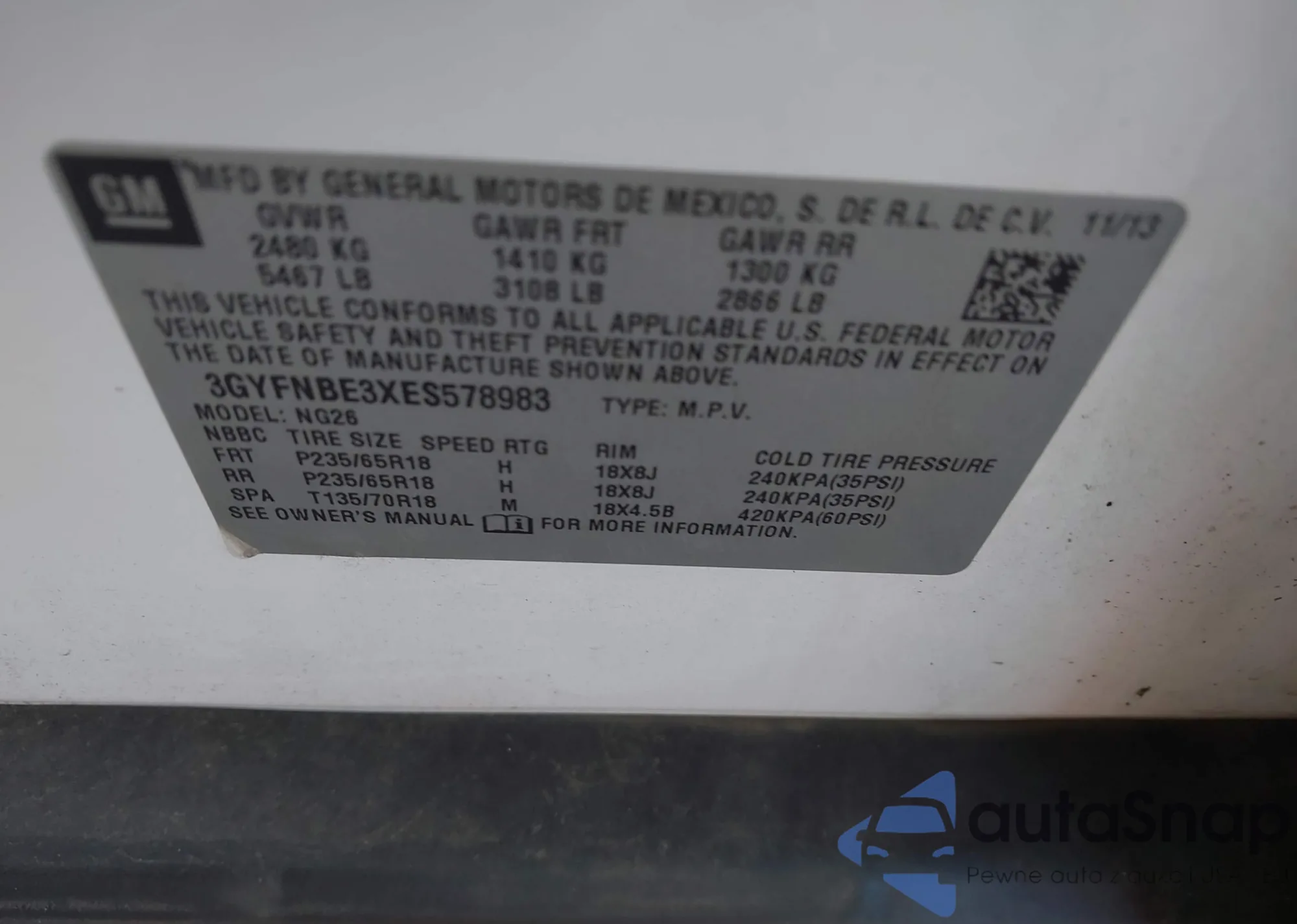 VIN: 3GYFNBE3XES578983