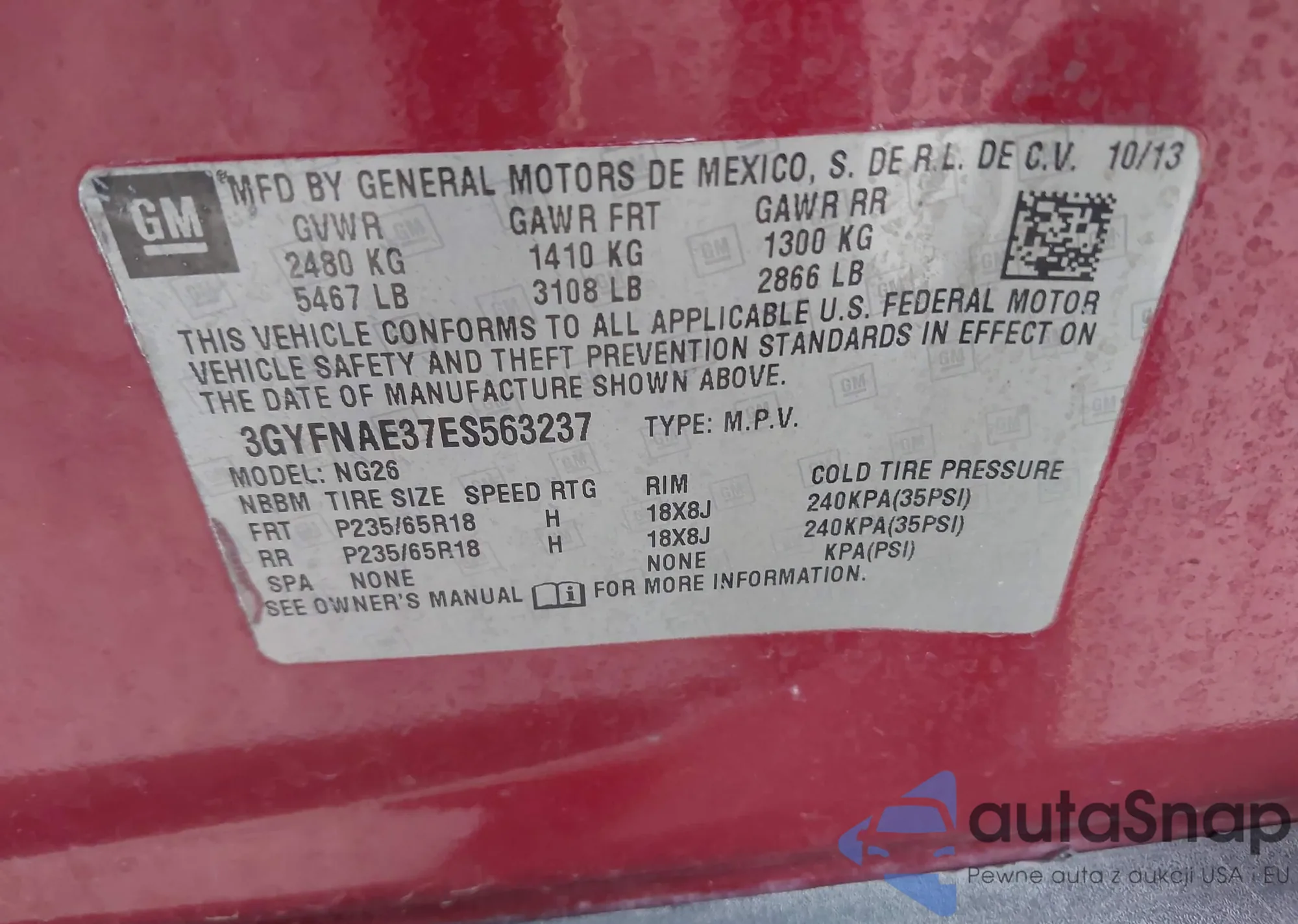 • VIN: 3GYFNAE37ES563237