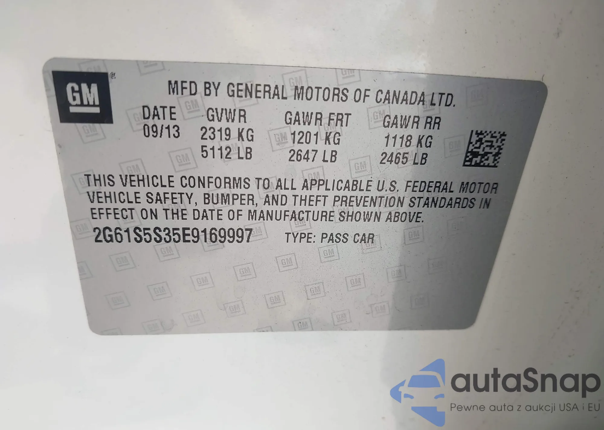 VIN: 2G61S5S35E9169997