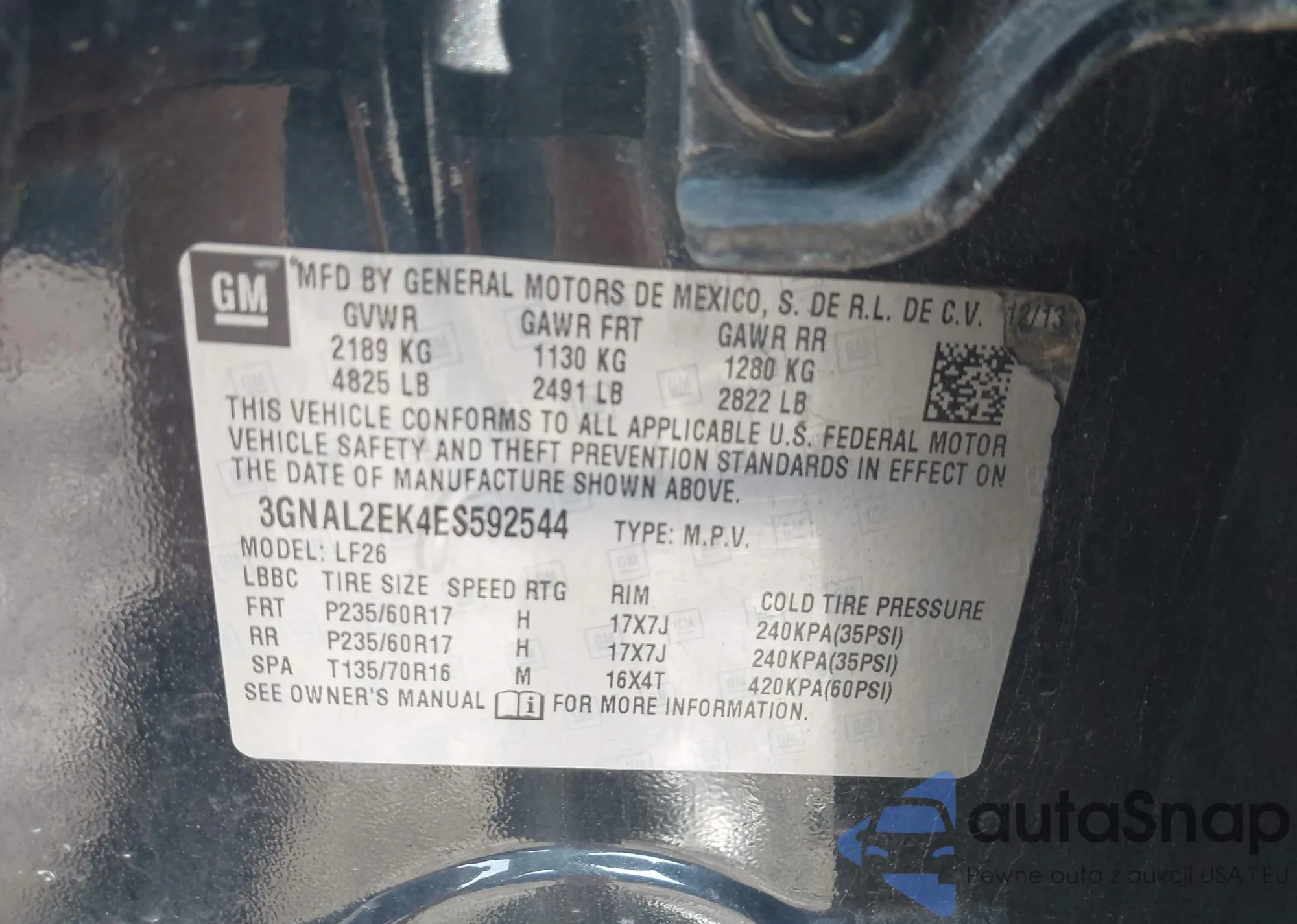 VIN: 3GNAL2EK4ES592544