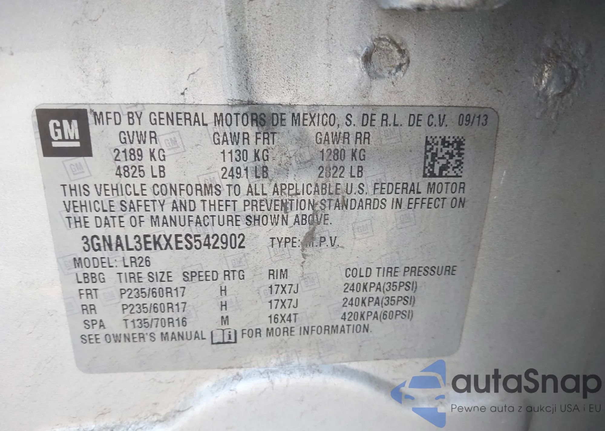 VIN: 3GNAL3EKXES542902