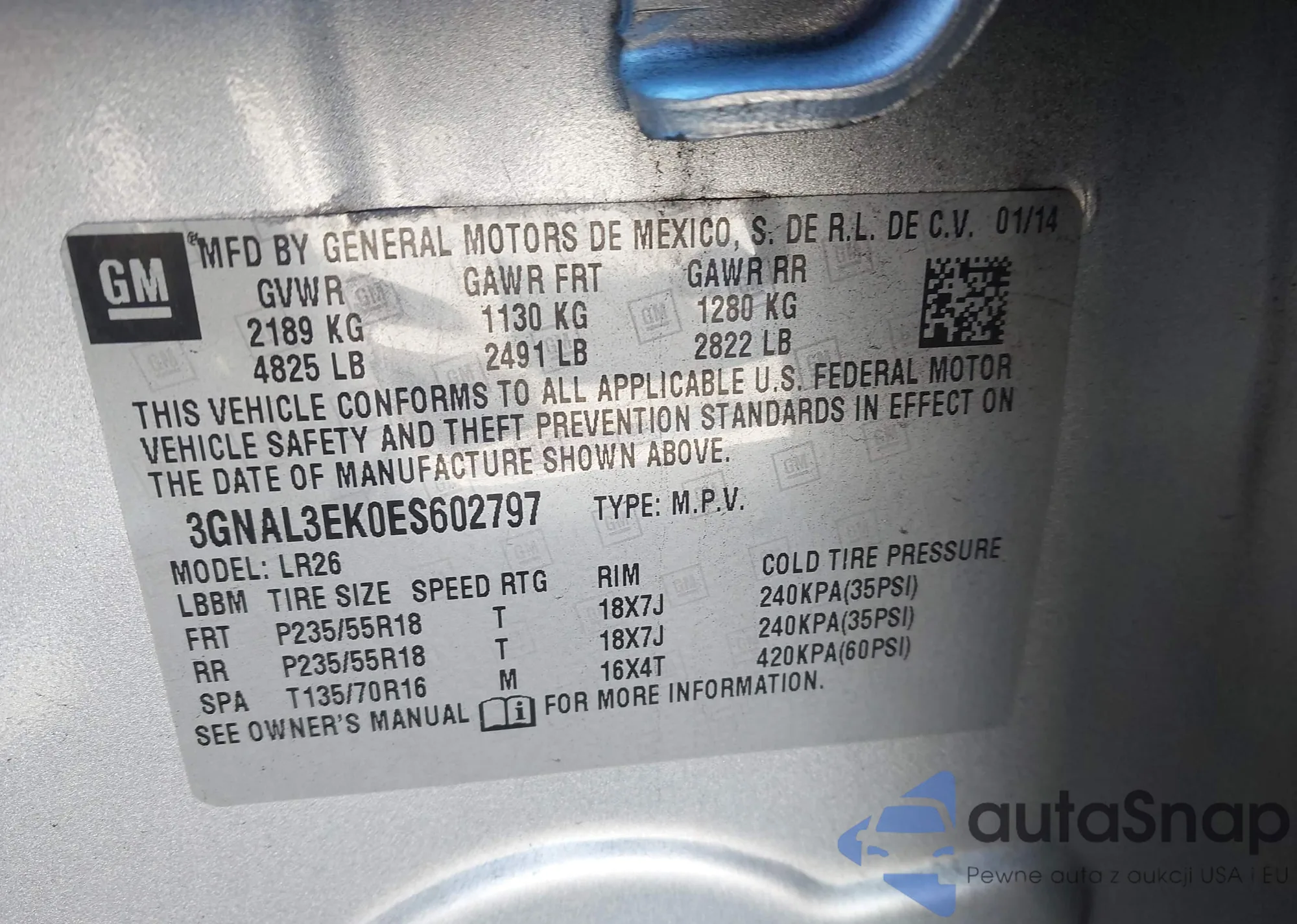 VIN: 3GNAL3EK0ES602797