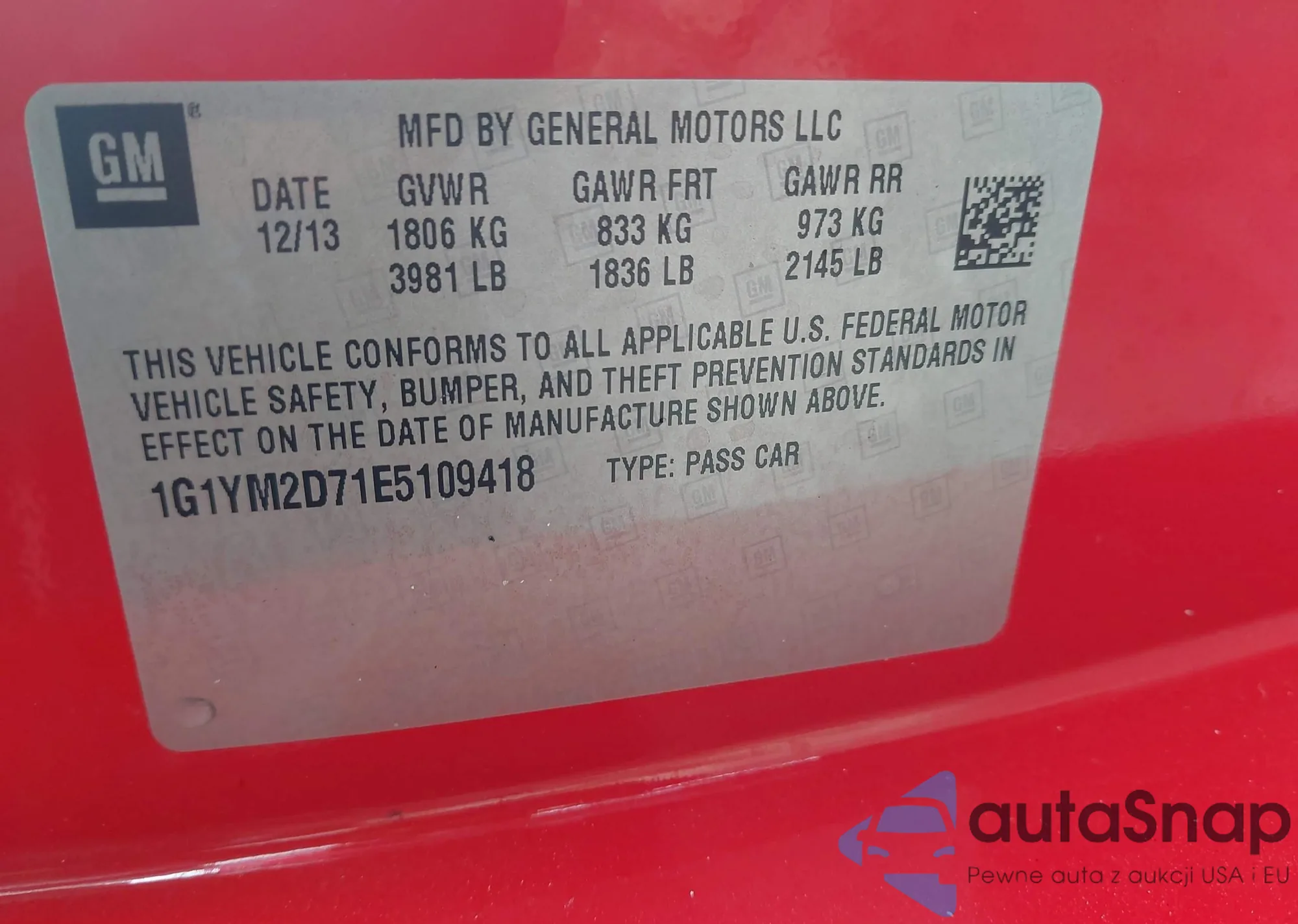 VIN: 1G1YM2D71E5109418
