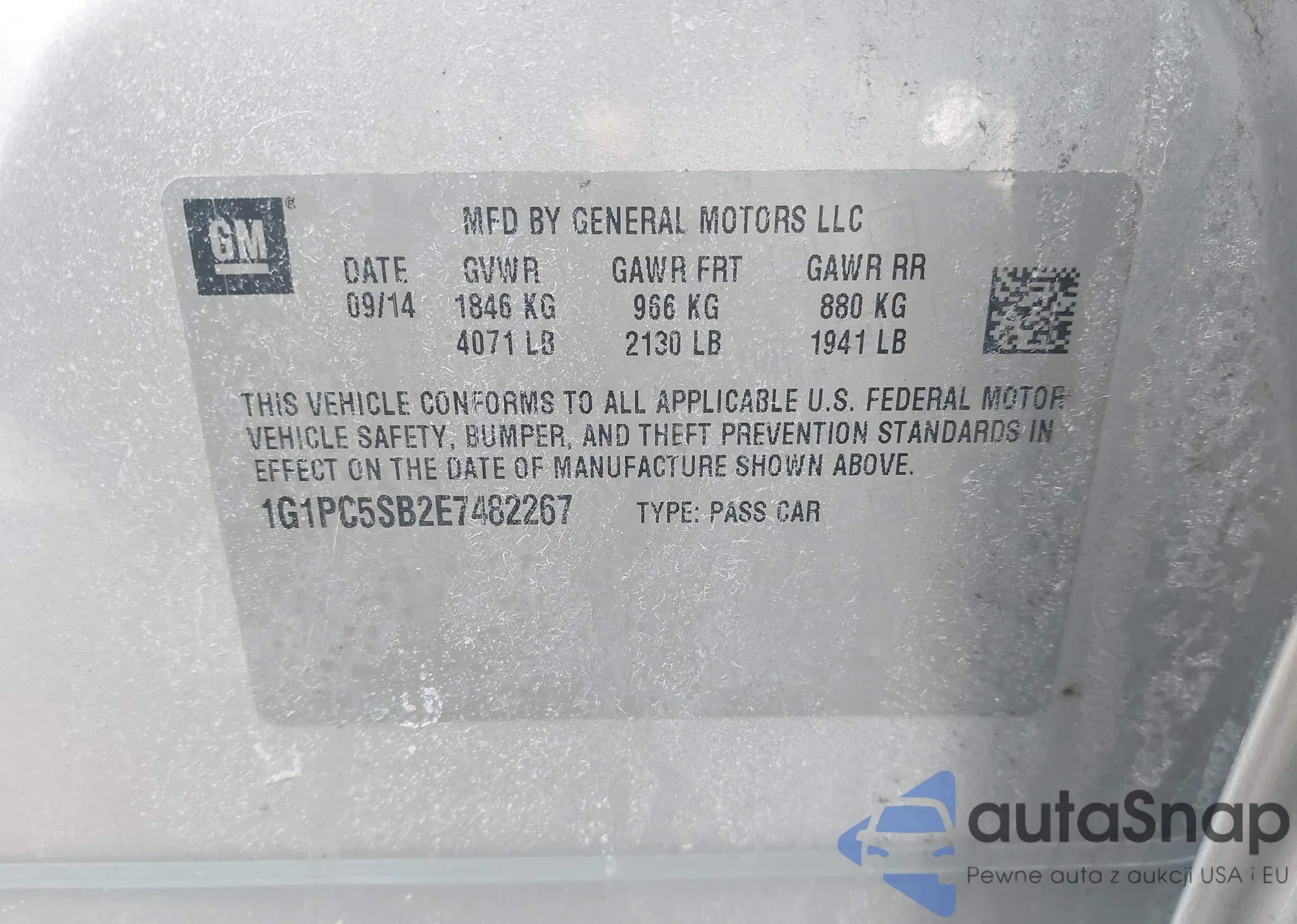 The car Chevrolet Cruze 2014 (VIN 1G1PC5SB2E7482267) has not been auctioned before. The documents are clean, and the mileage matches or is below the market average. Sold by an insurance company – we recommend purchase. Delivery to the port will take approx. 6–8 weeks.