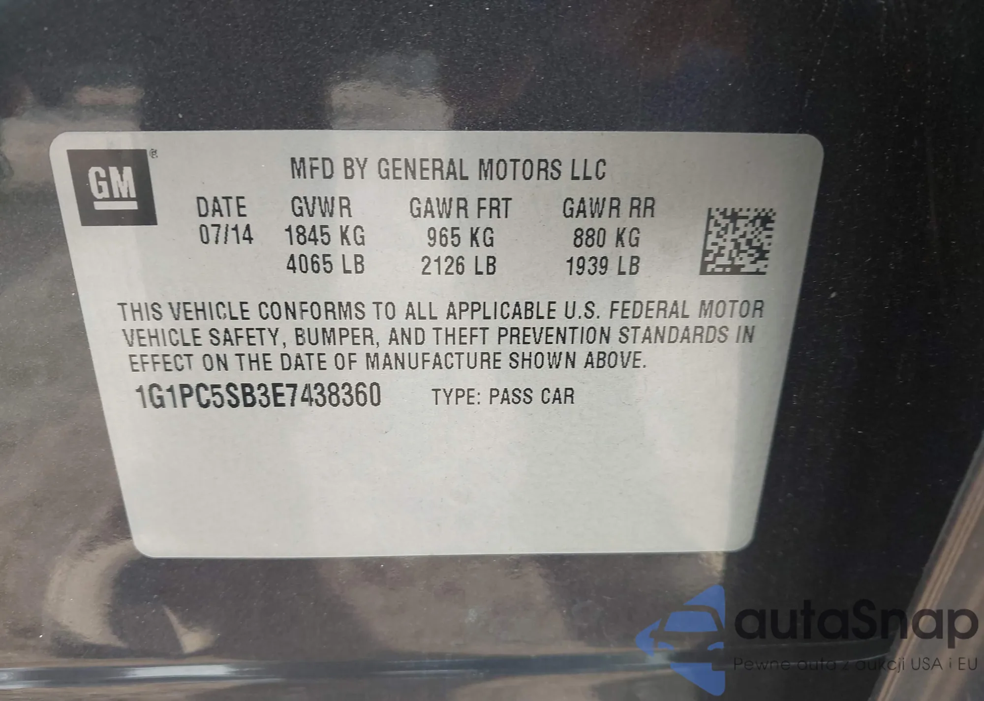 VIN: 1G1PC5SB3E7438360