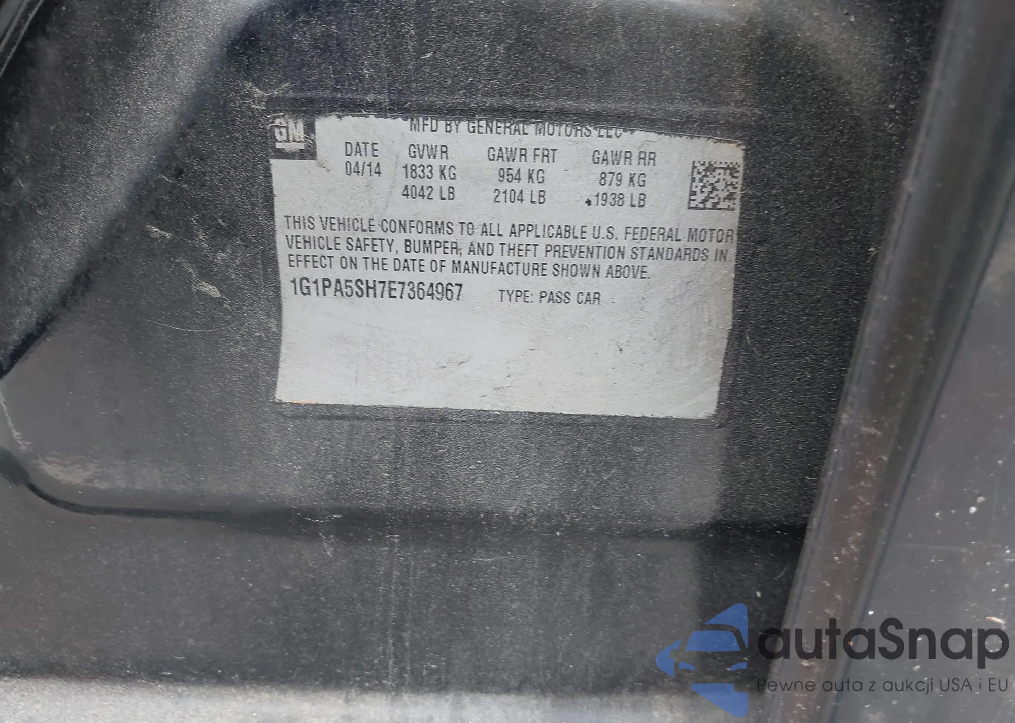 The car Chevrolet Cruze 2014 (VIN 1G1PA5SH7E7364967) is sold by an unverified seller. We recommend checking the Carfax report and confirming registration possibilities before purchase.