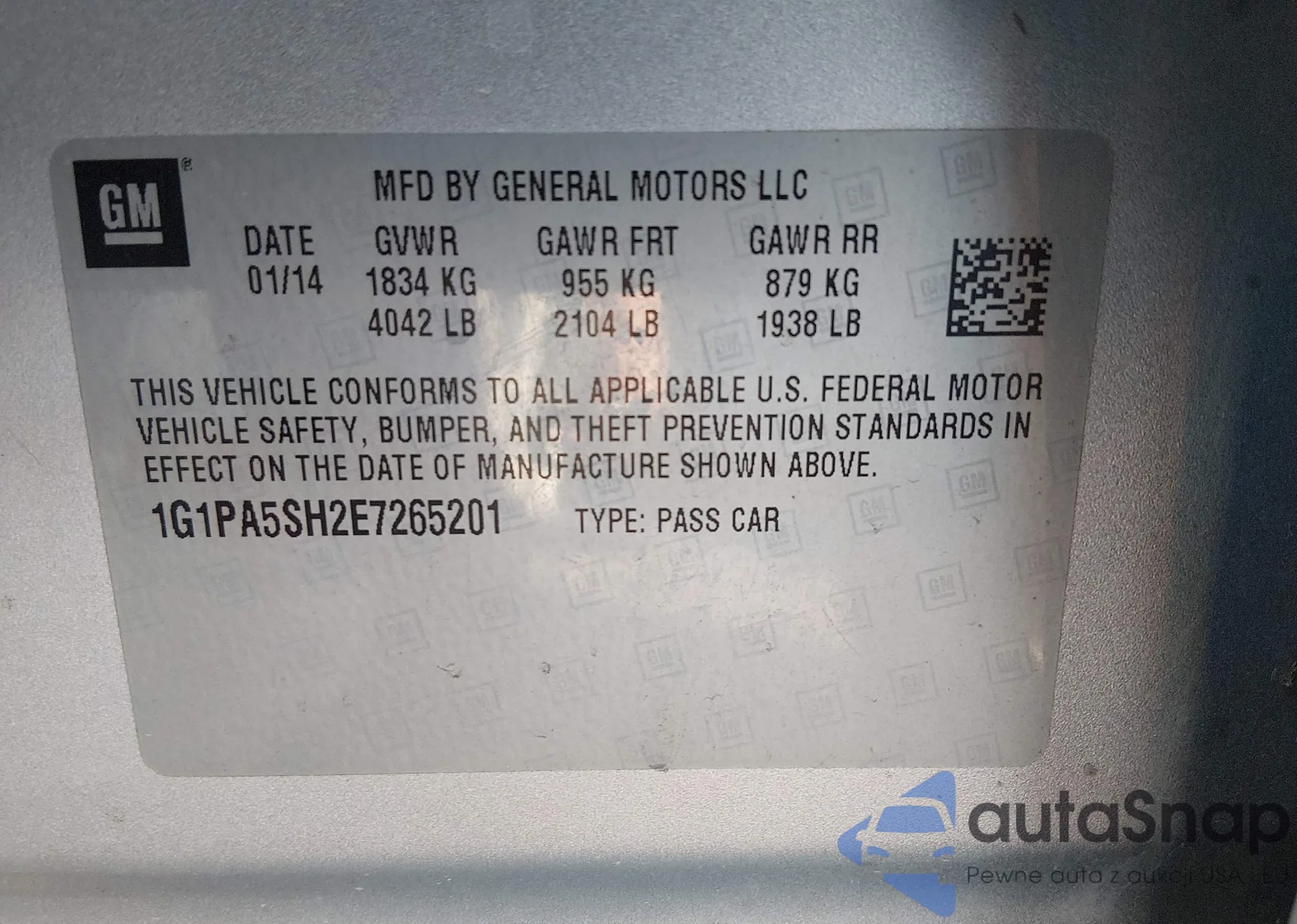 The car Chevrolet Cruze 2014 (VIN 1G1PA5SH2E7265201) is sold by an unverified seller. We recommend checking the Carfax report and confirming registration possibilities before purchase.