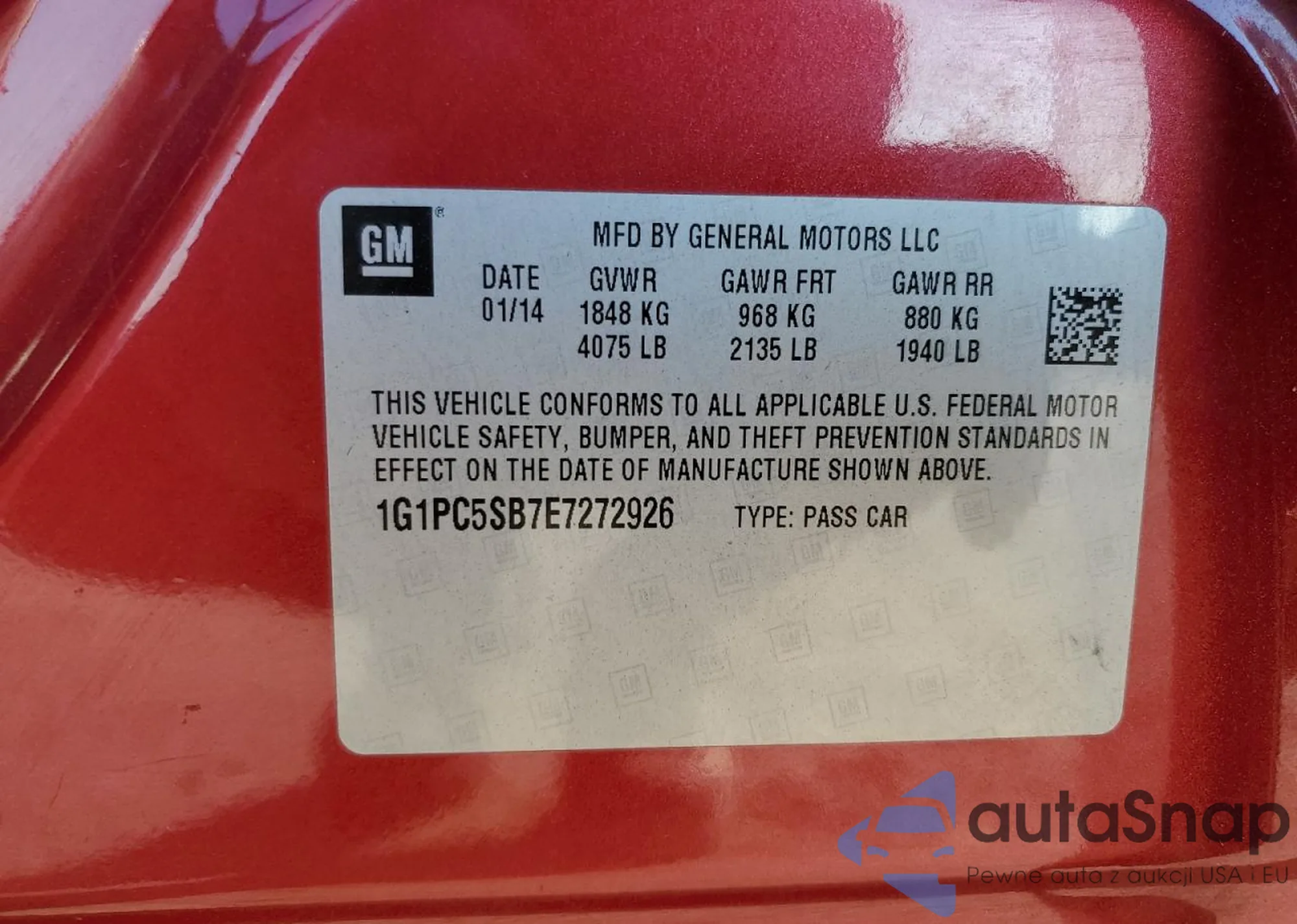The car Chevrolet Cruze 2014 (VIN 1G1PC5SB7E7272926) is sold by an unverified seller. We recommend checking the Carfax report and confirming registration possibilities before purchase.